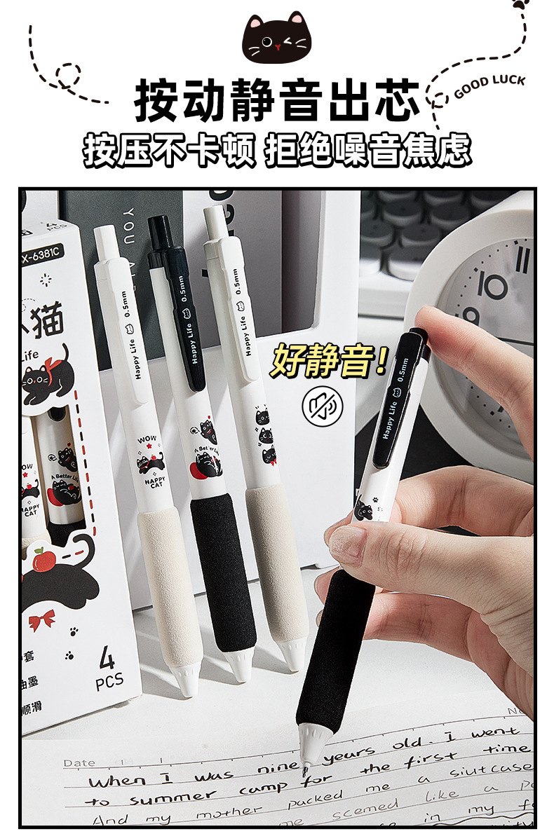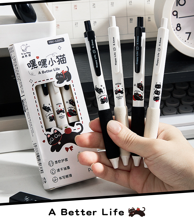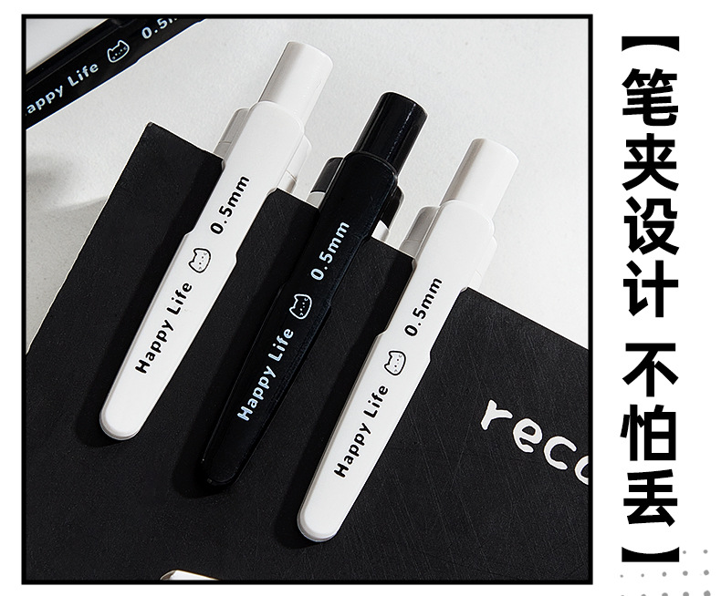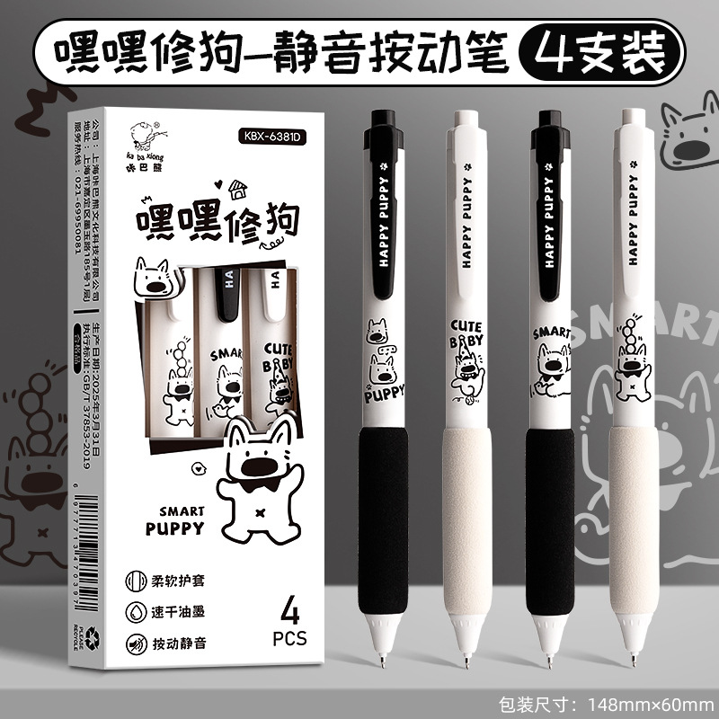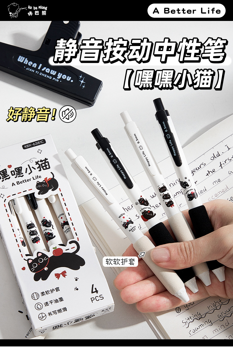 咔巴熊新款静音按动笔软握高颜值中性笔速干ST刷题考试专用黑色笔