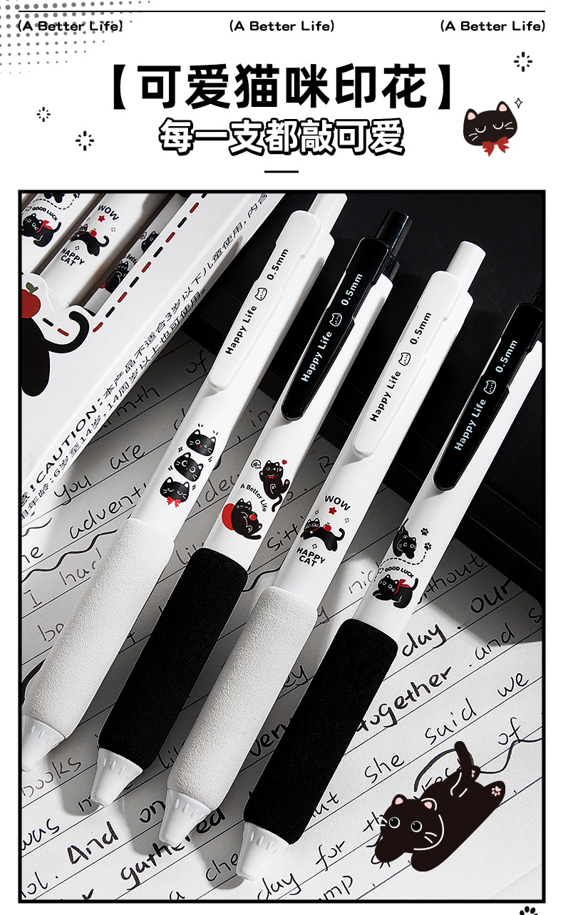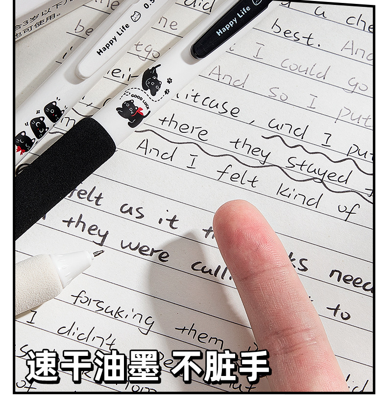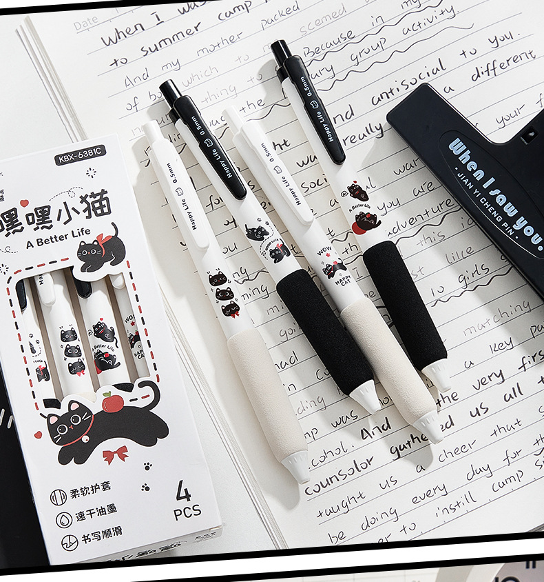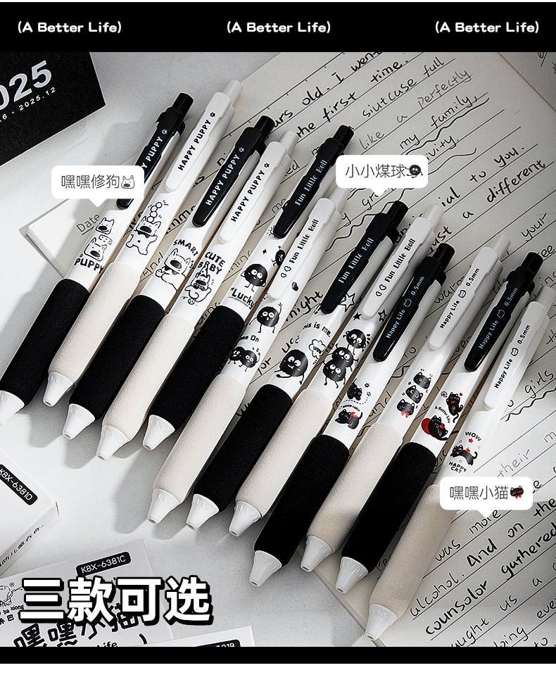 咔巴熊新款静音按动笔软握高颜值中性笔速干ST刷题考试专用黑色笔