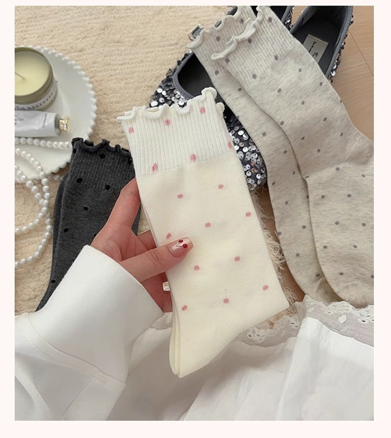 百搭夏季波点可爱花边袜子女中筒袜款代发堆堆日系木耳边中筒批发