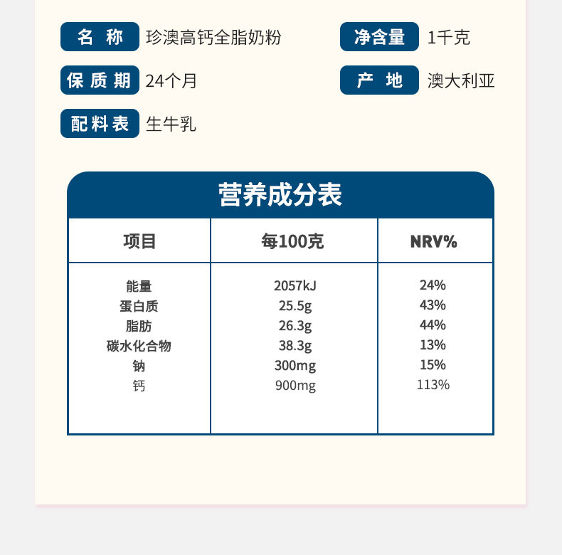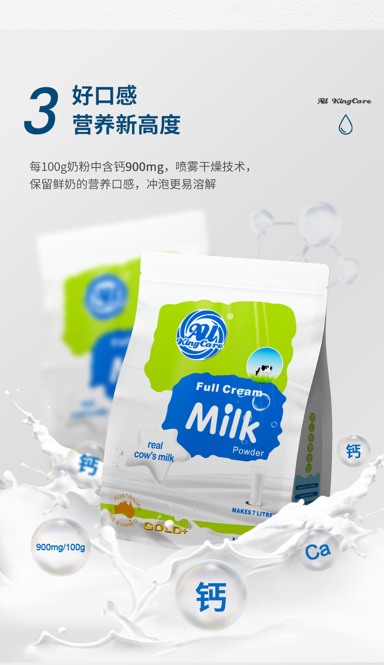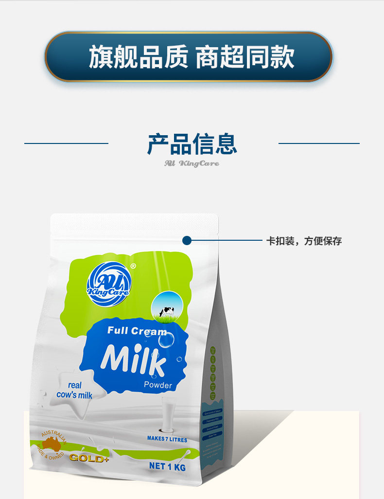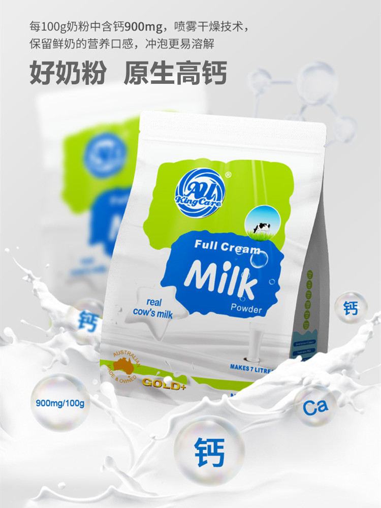 澳洲进口珍澳全脂脱脂高钙奶粉袋装1000g成人青少年高蛋白生牛乳