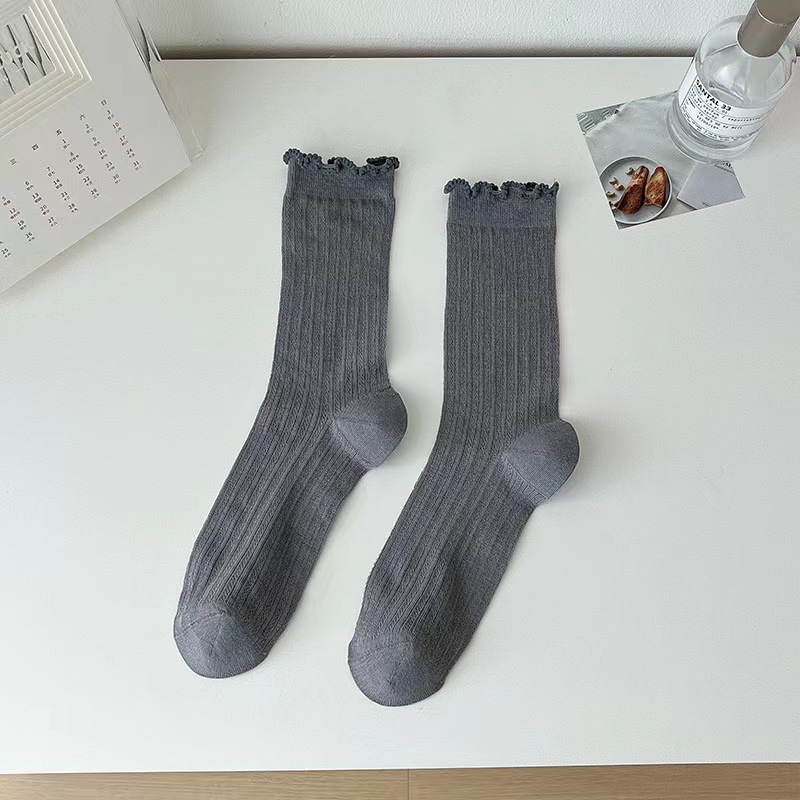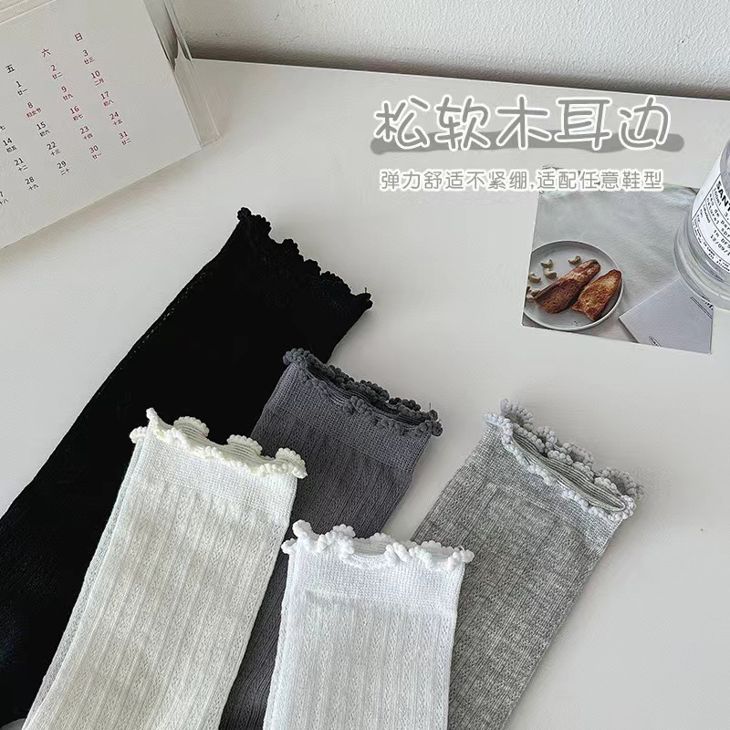 木耳边纯色堆堆袜夏季新款袜子女miu风薄款甜美透气中筒袜子批发