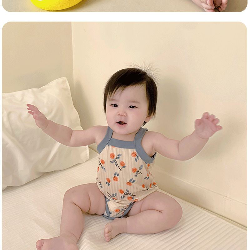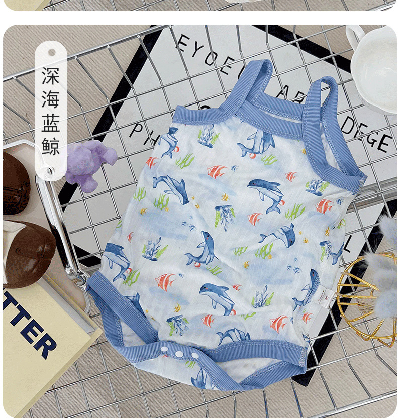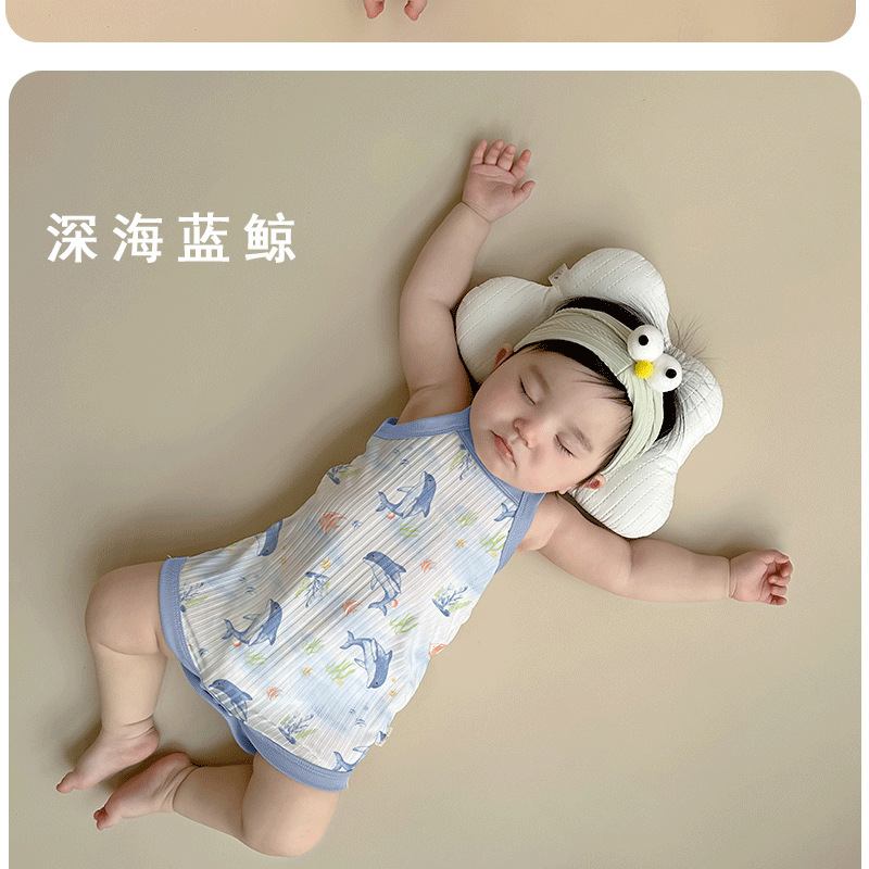 婴儿凉而不冰丝连体衣睡衣无袖薄款男童女童哈衣无骨儿童吊带爬服