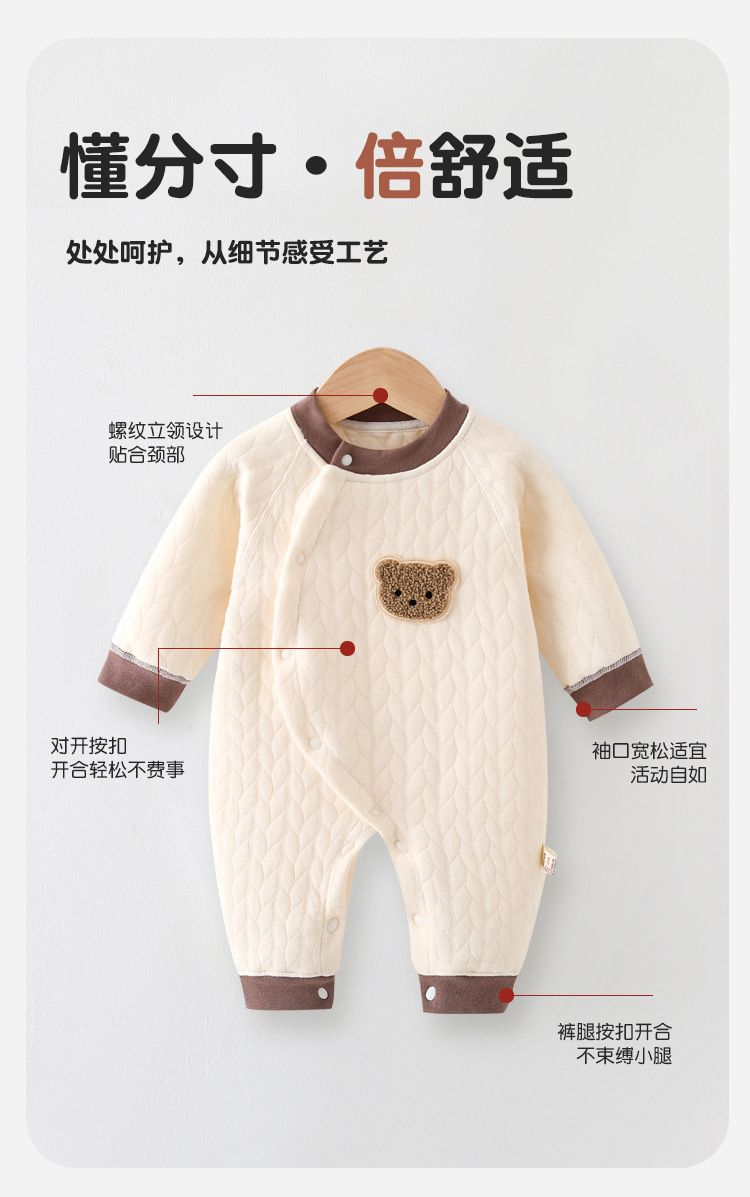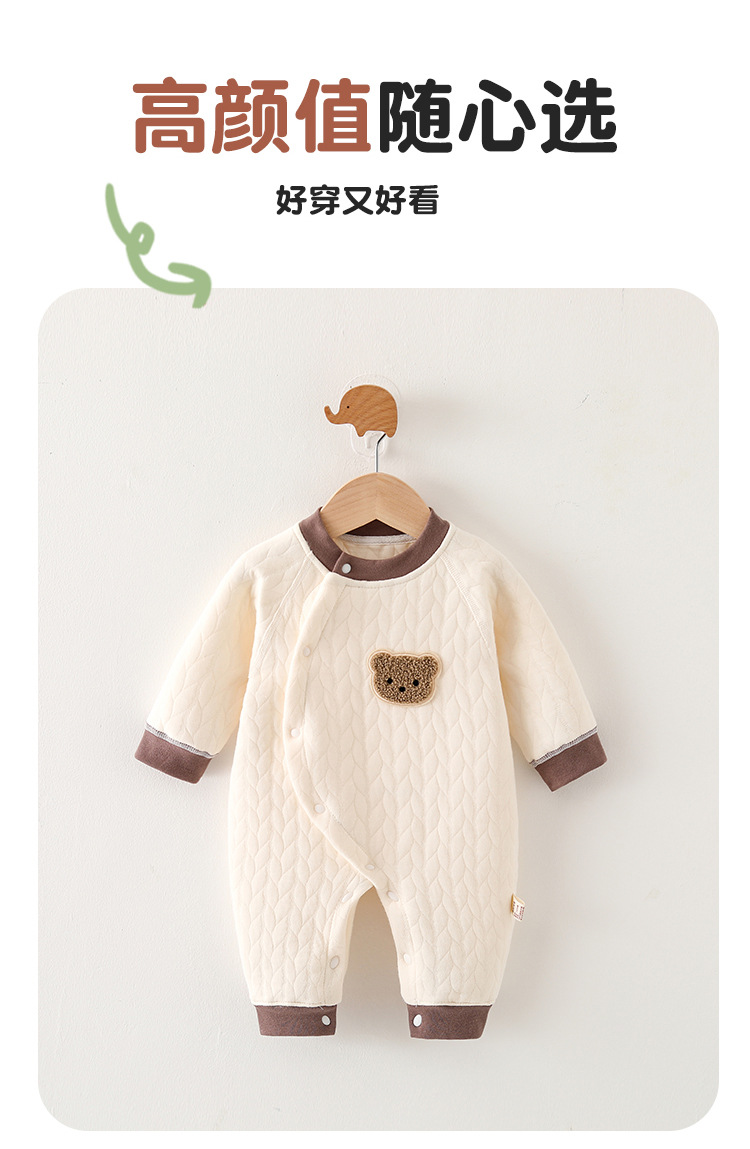 婴儿连体衣新生儿三层保暖纯棉无骨哈衣宝宝长袖空气层秋冬款爬服