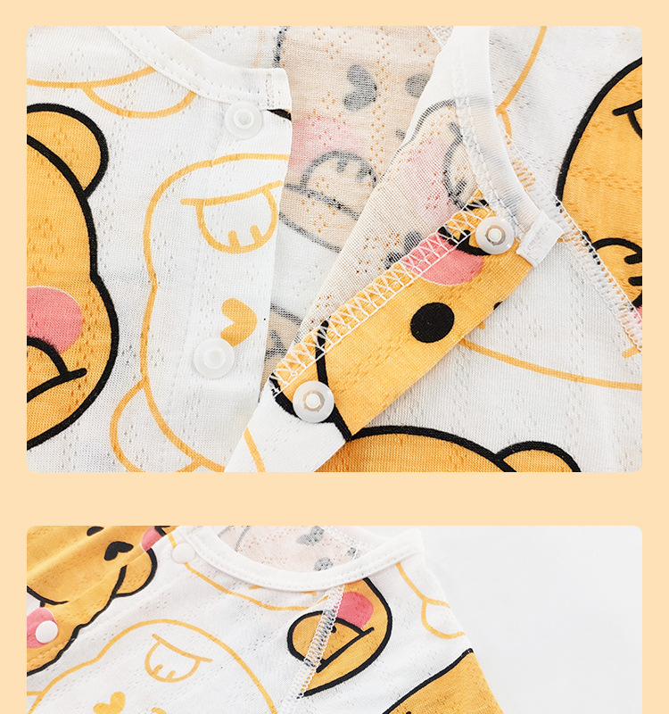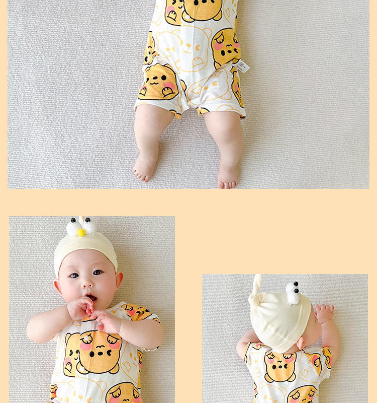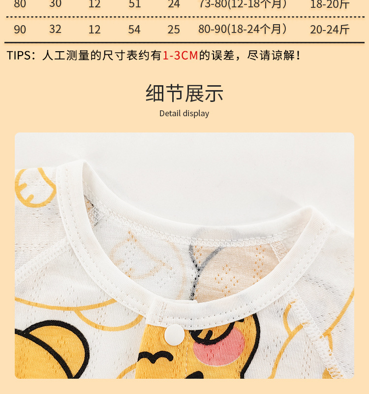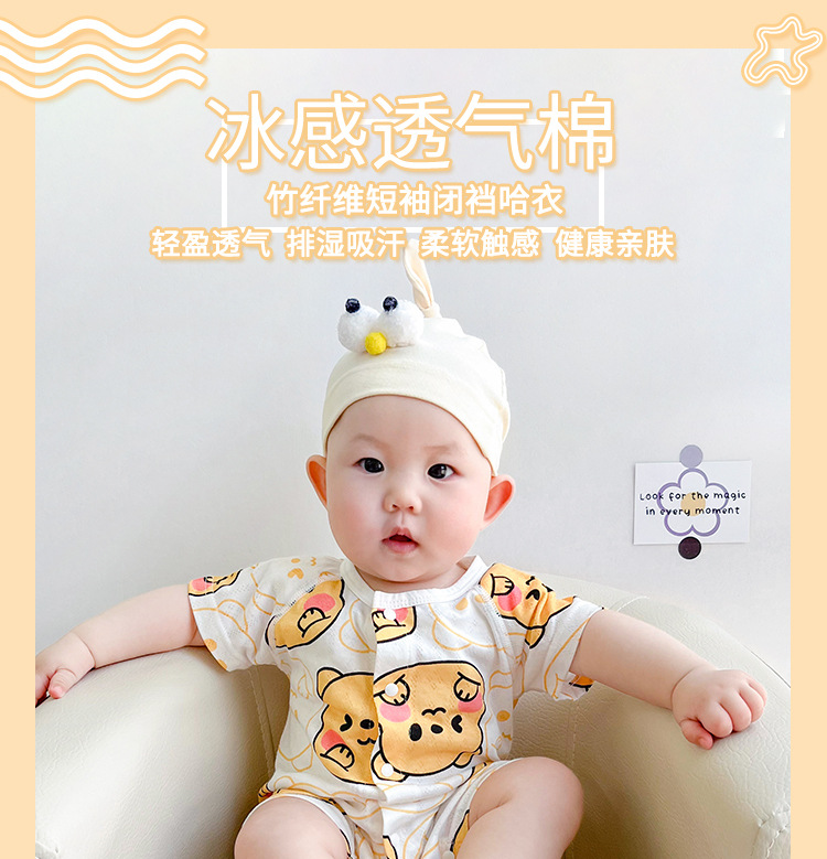 A类婴儿无骨短袖闭档连体哈衣夏季薄款竹纤维男女宝卡通居家短爬