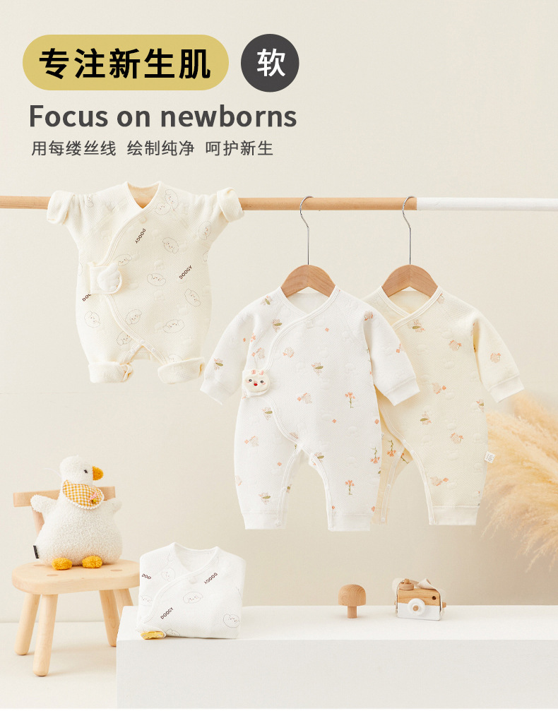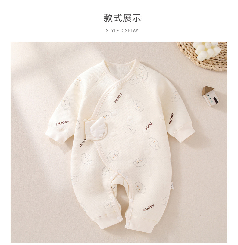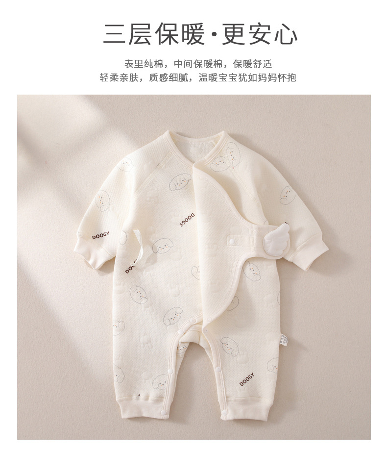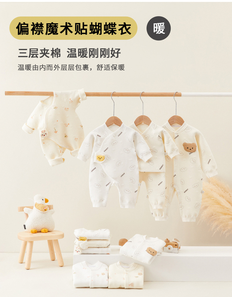 新生儿秋冬连体衣宝宝魔术贴三层保暖无骨哈衣婴儿爬服新款蝴蝶衣