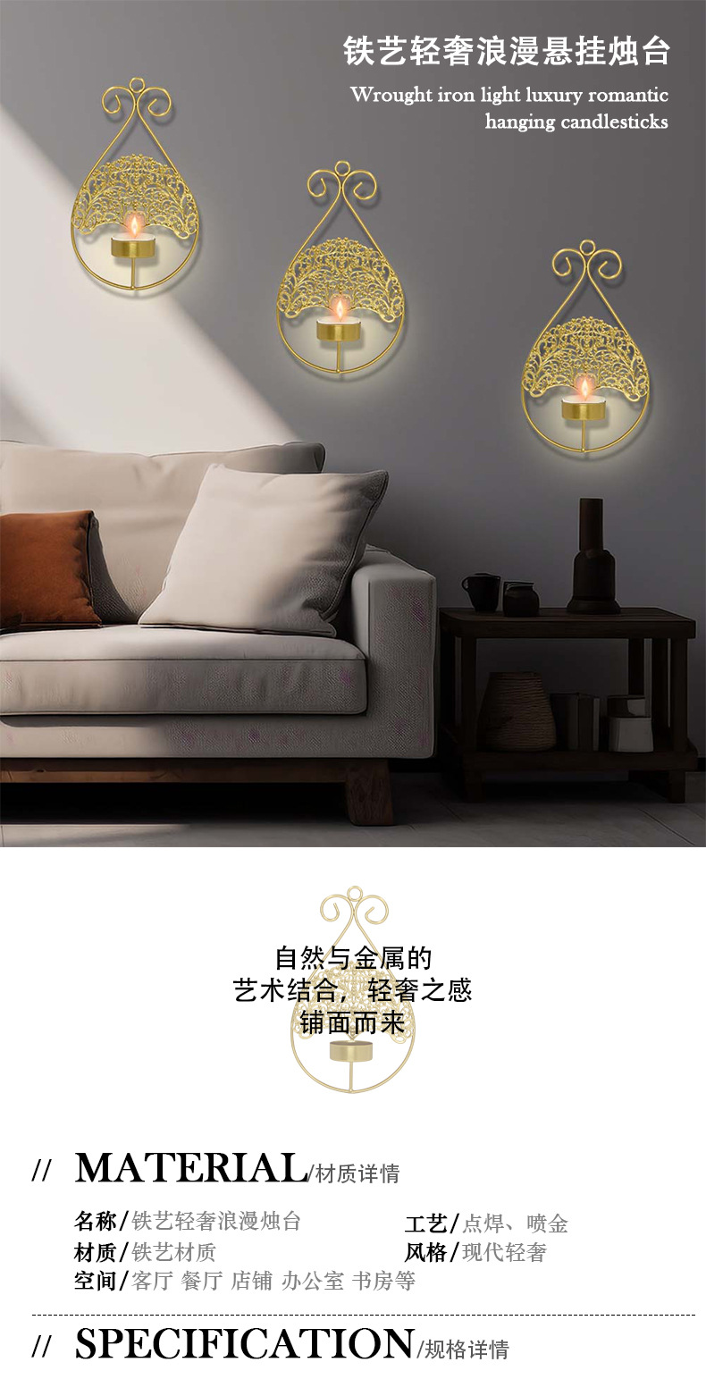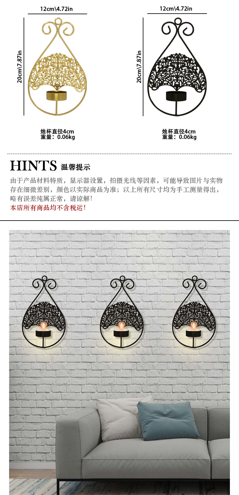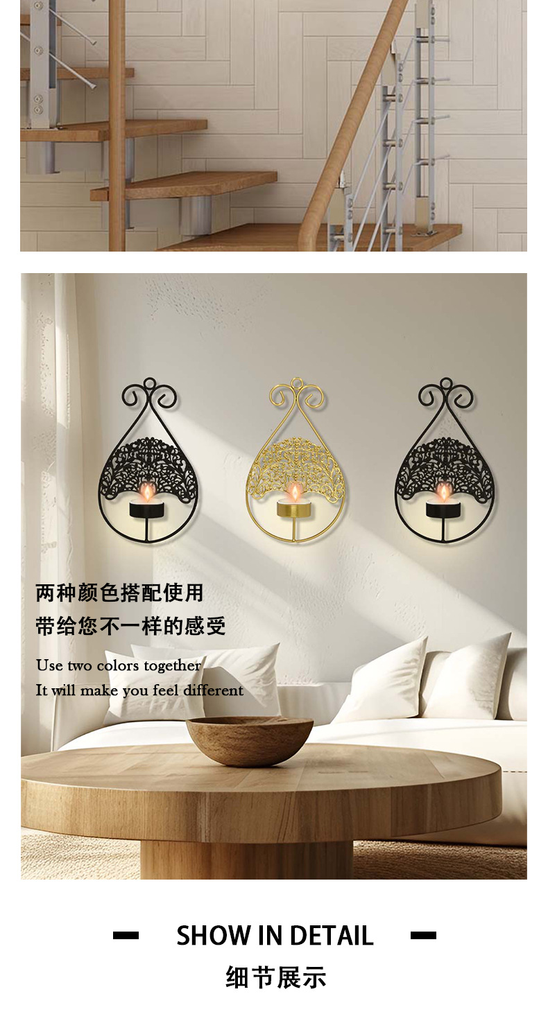 跨境专供铁艺壁挂烛台创意生命之树轻奢墙面装饰蜡烛香薰架批发