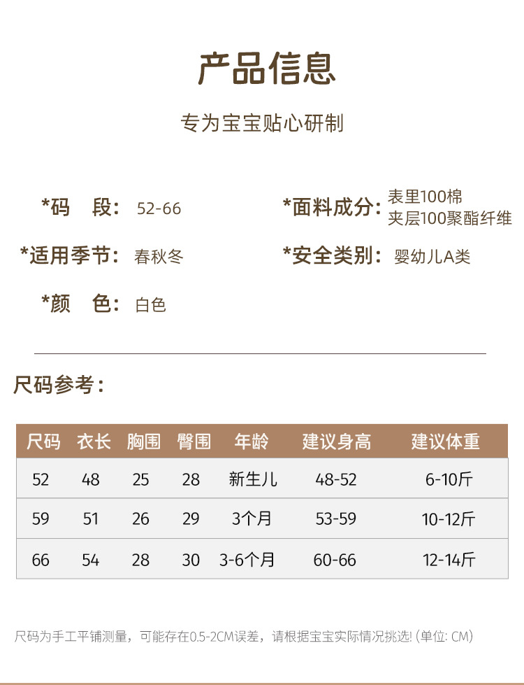 | 52 (newborn 3.00 kg-5.00 kg(52(新生儿6-10斤)) | USD $0.0 | 387 piece available |