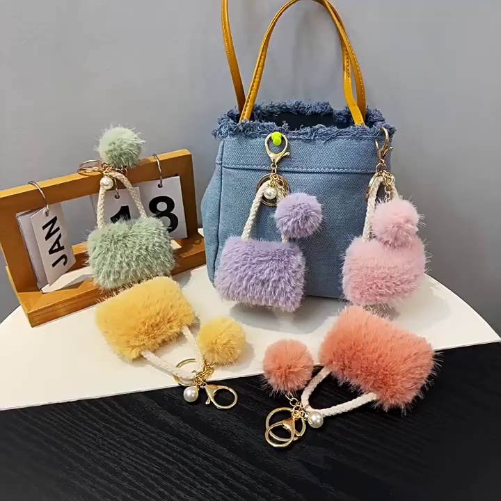 轻奢小香风迷你包造型钥匙扣可爱毛绒珍珠挂件汽车钥匙链挂饰礼物