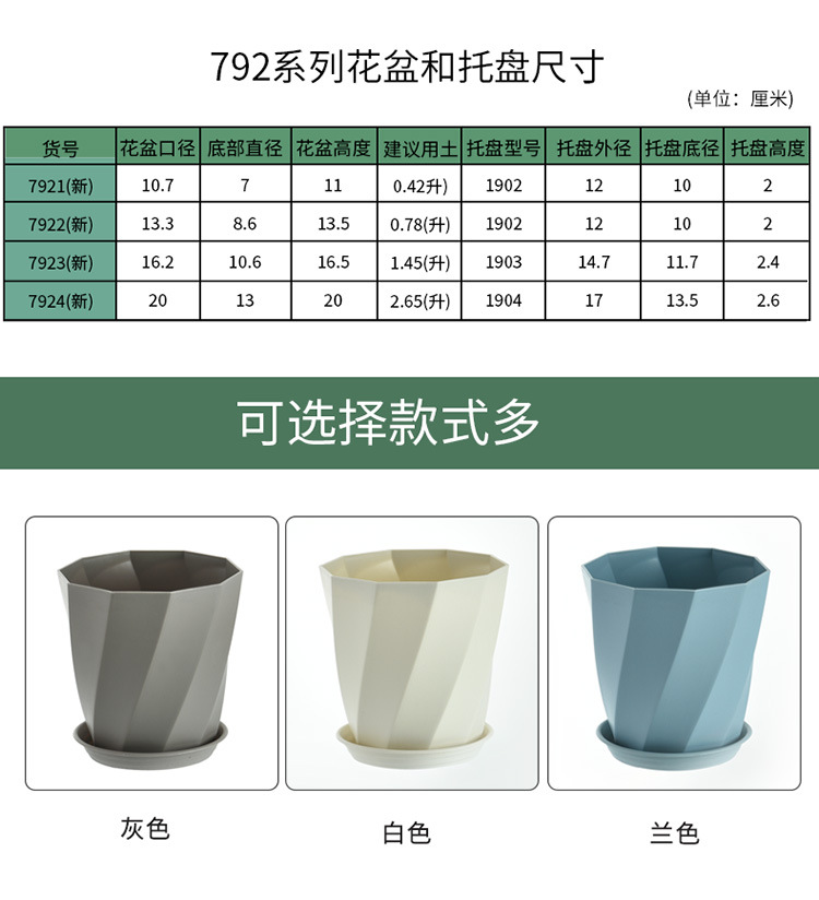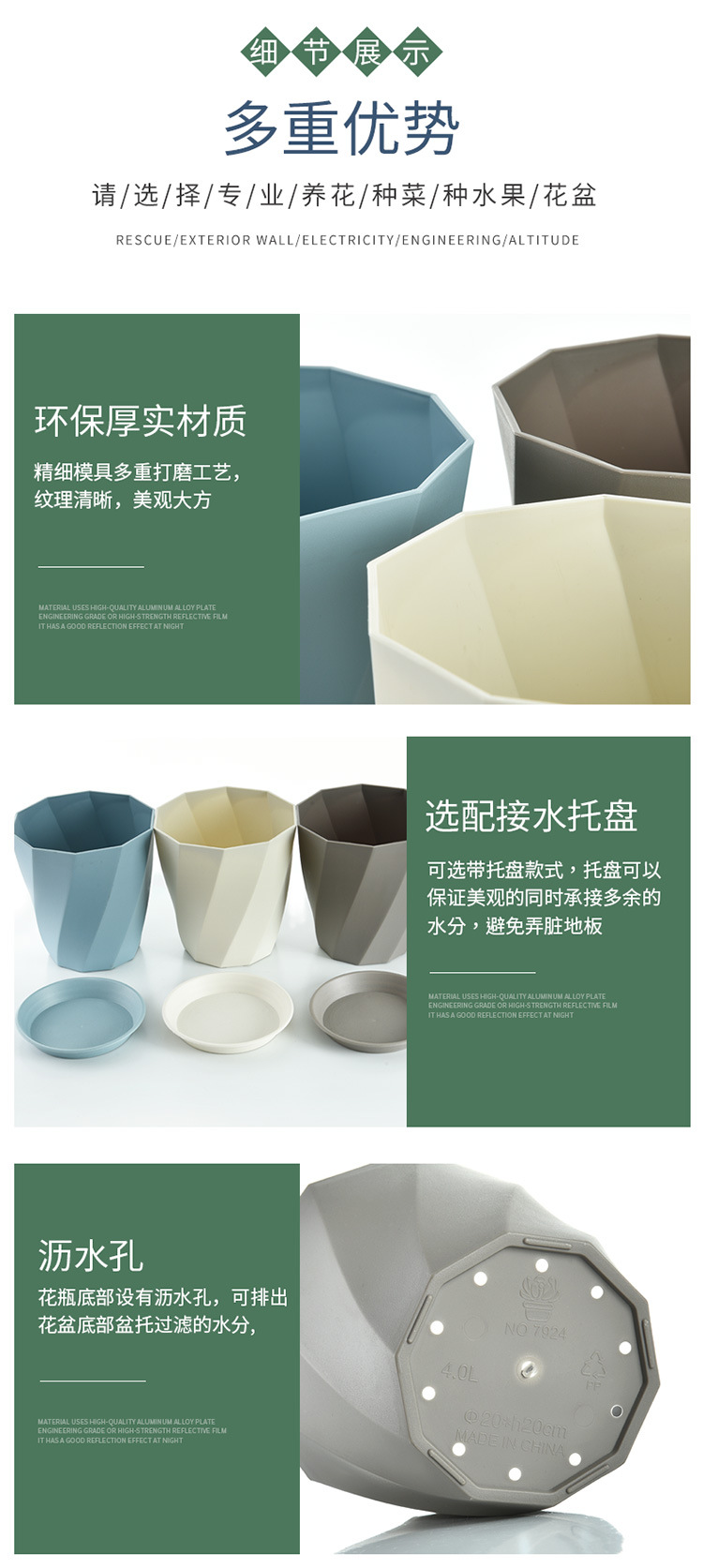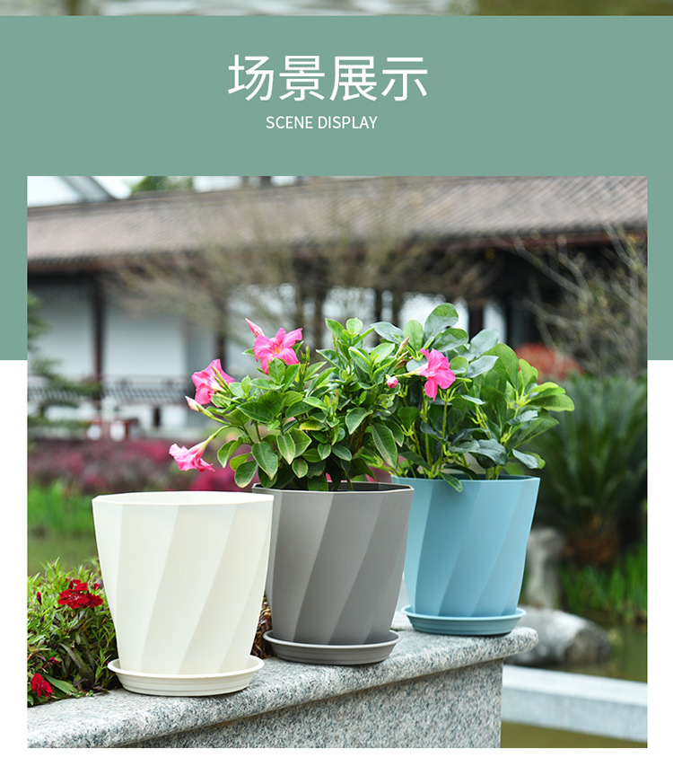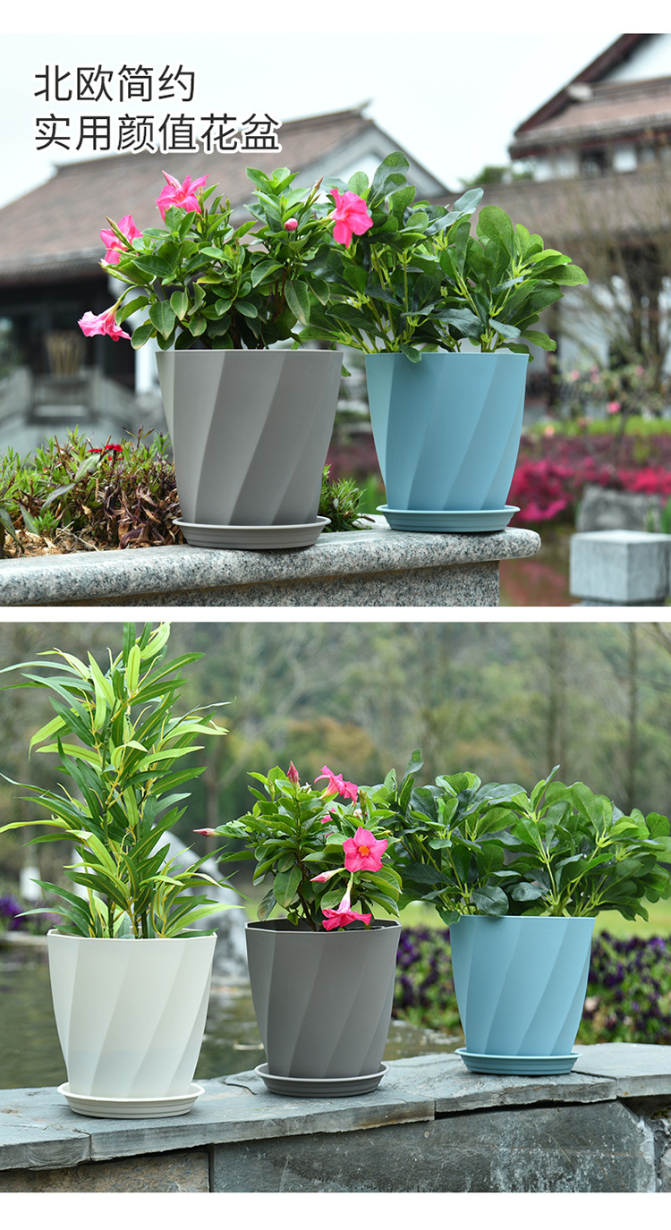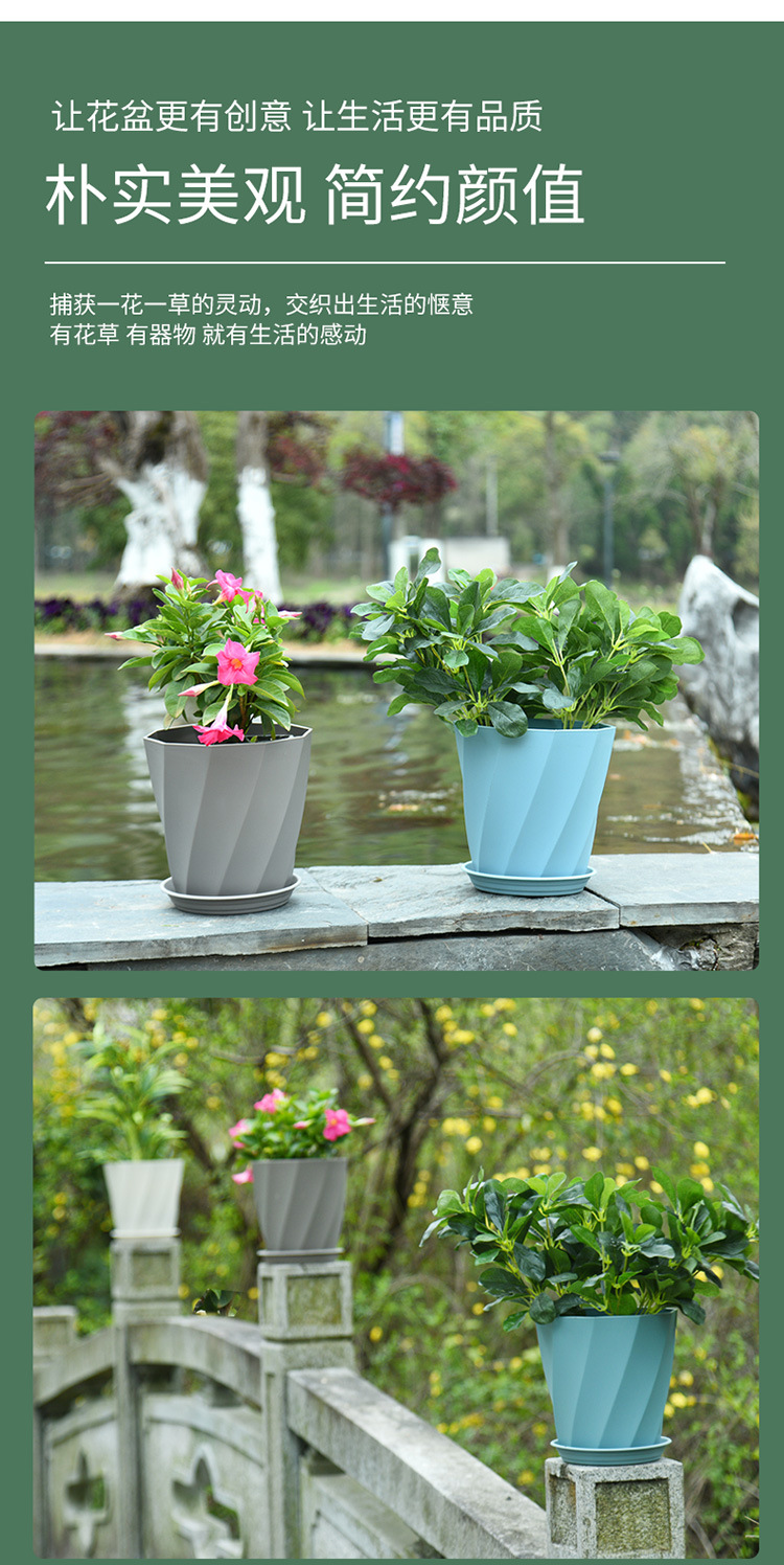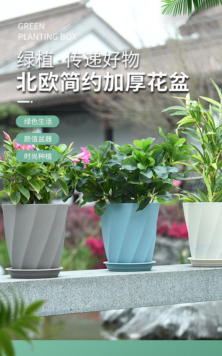 北欧简约经典螺旋纹加厚磨砂地摊绿萝塑料百搭圆形花盆
