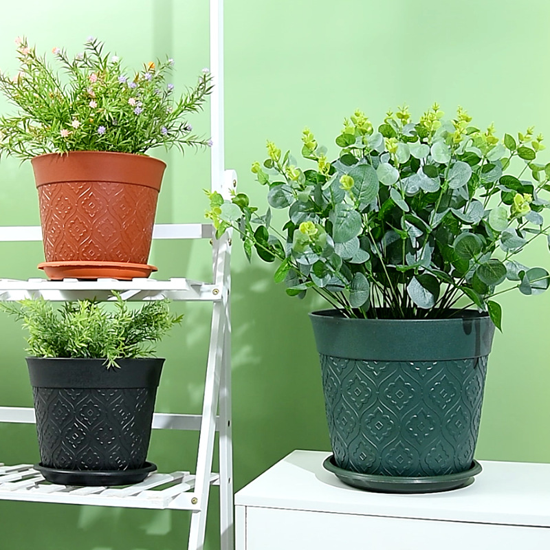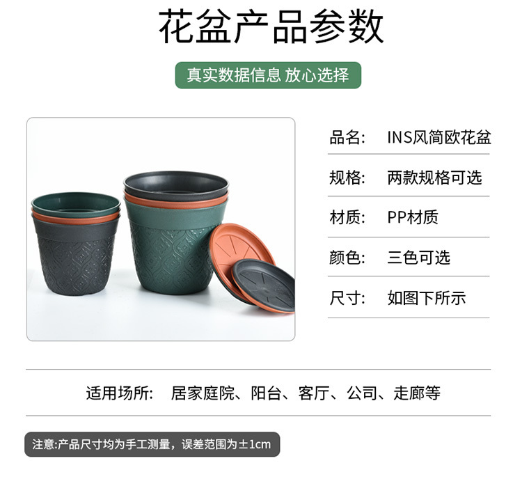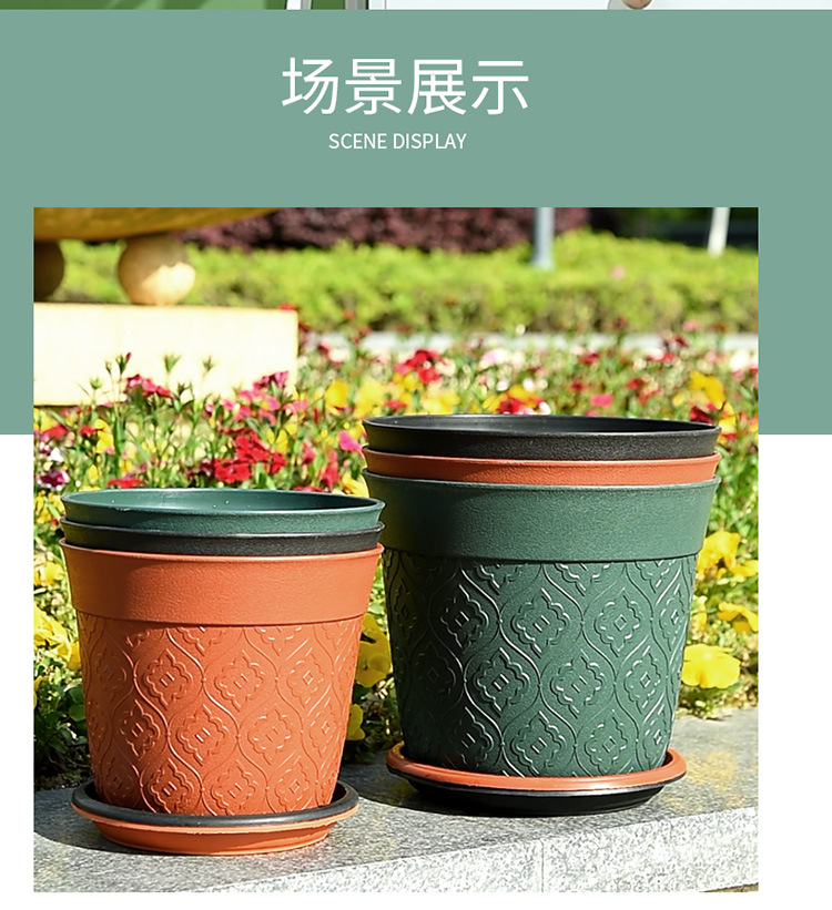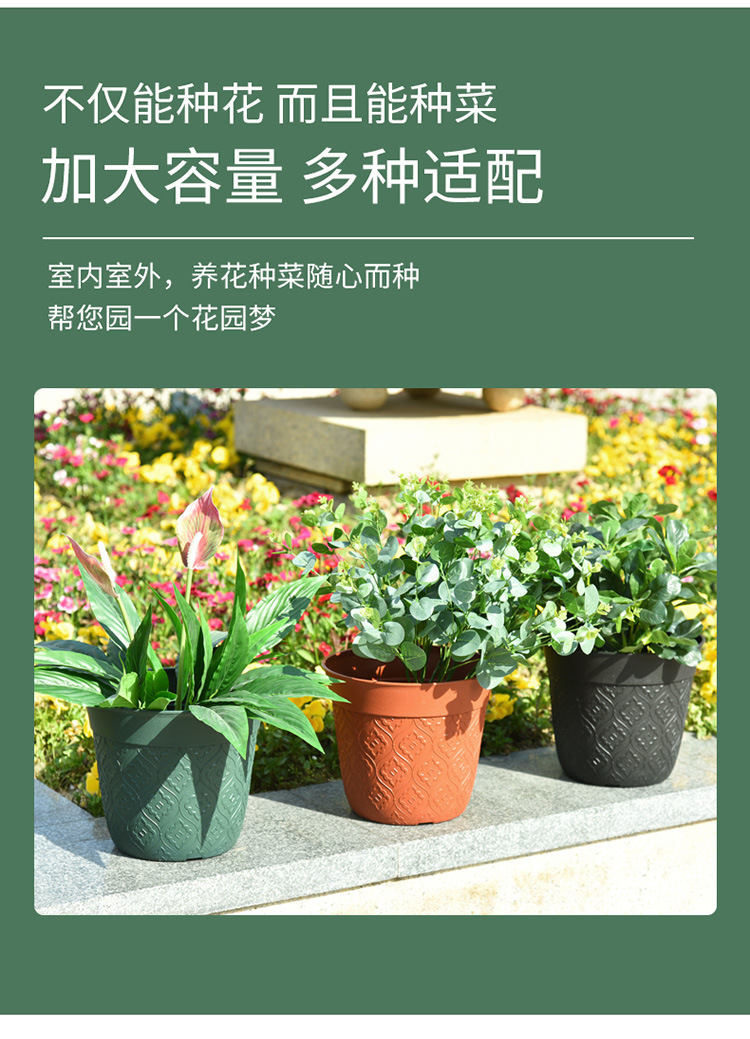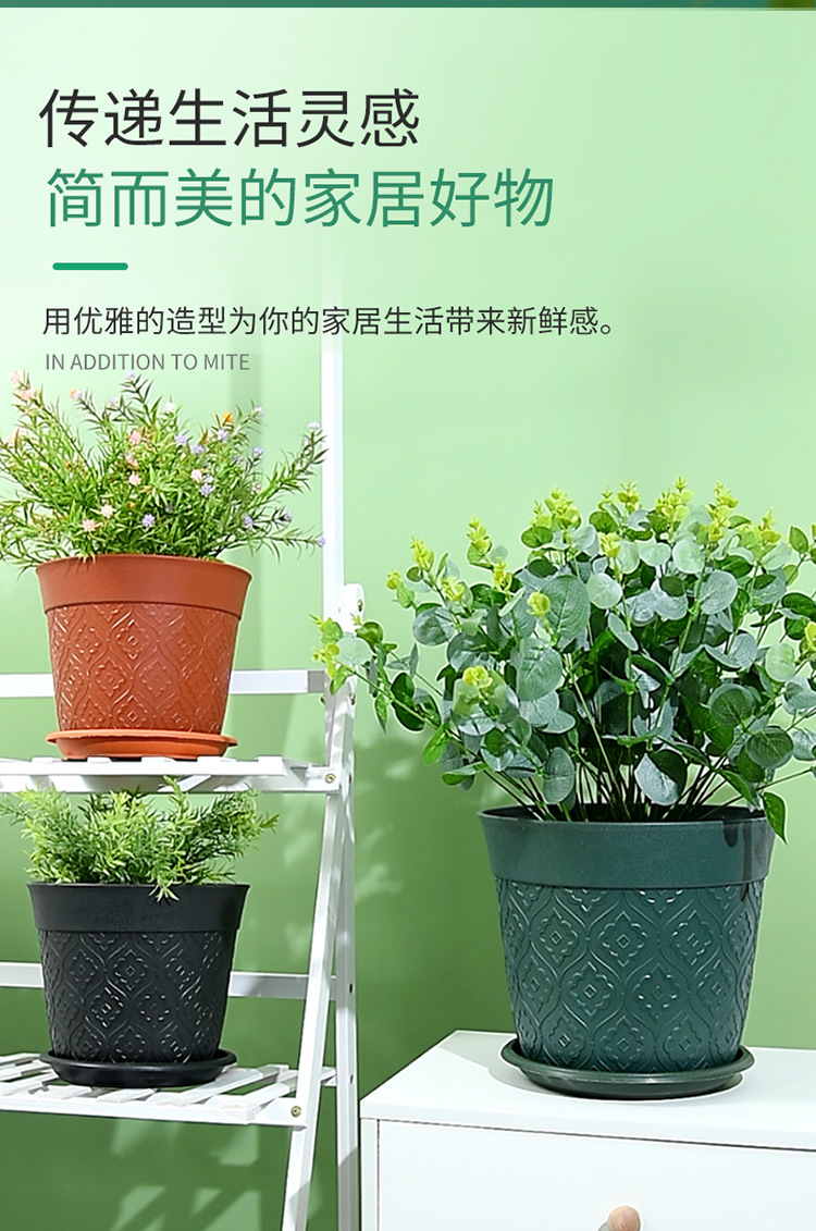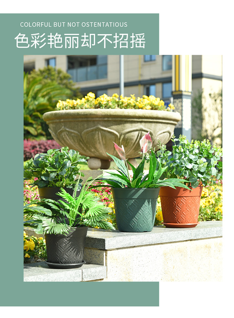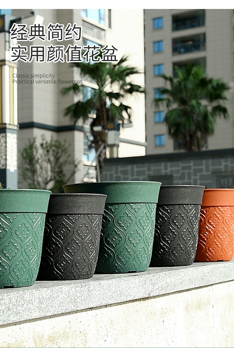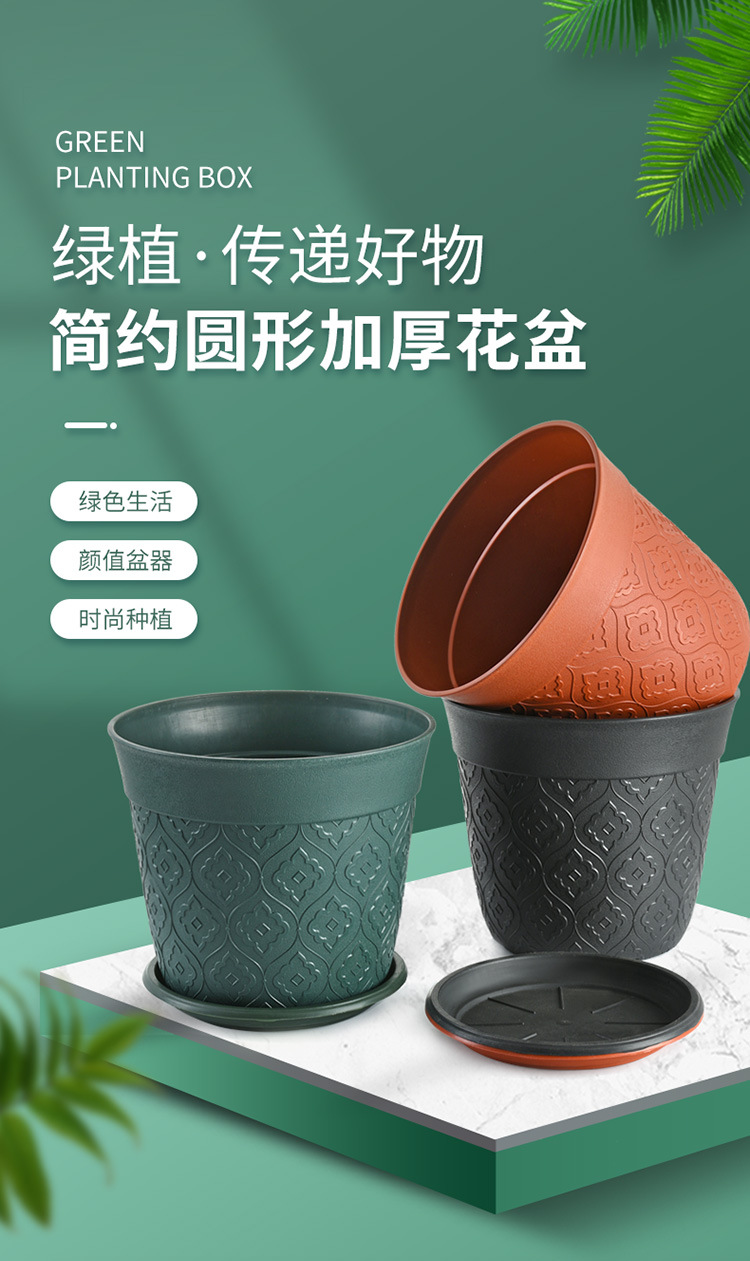 厂家直营百搭地摊简约时尚百搭加厚欧式立体浮雕圆形阳台塑料花盆