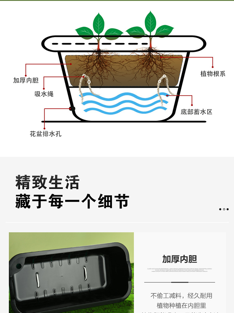 厂家直营新款简约懒人地摊长方形自吸式免托盘落地塑料花盆