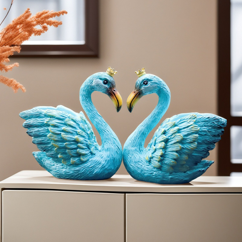 跨境情人节皇冠天鹅汽车家居摆件礼品雕像设计树脂工艺品家居装饰