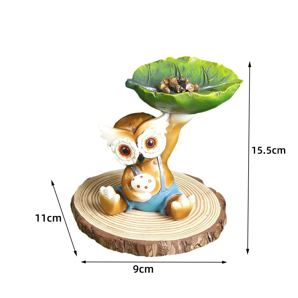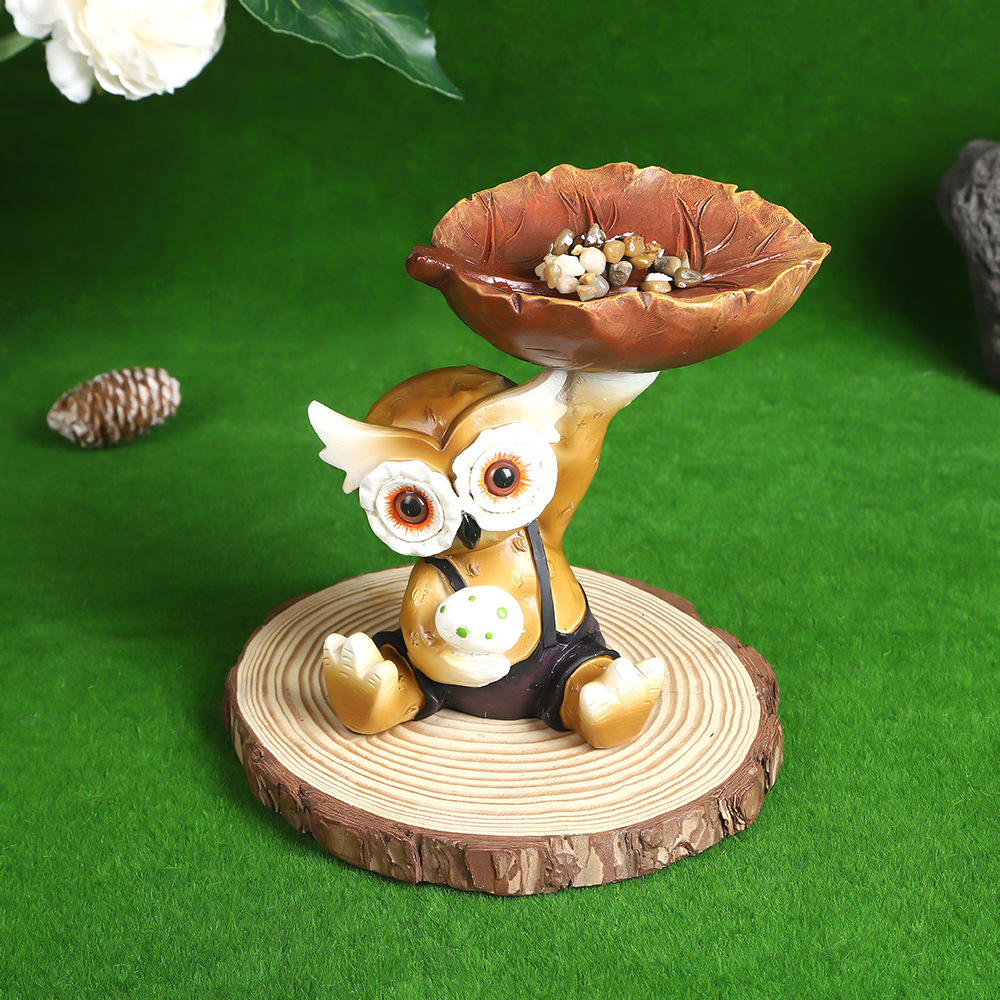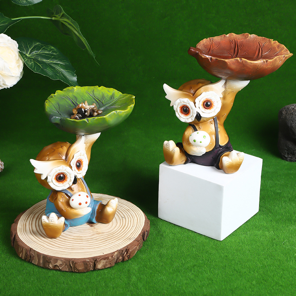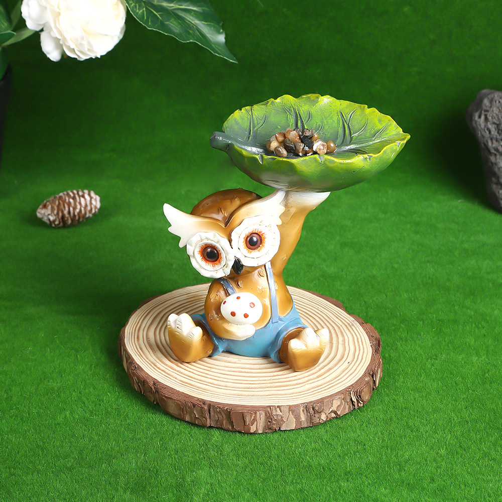 跨境新款韩国猫头鹰叶子喂鸟器雕刻庭院装饰设计树脂工艺品摆件厂