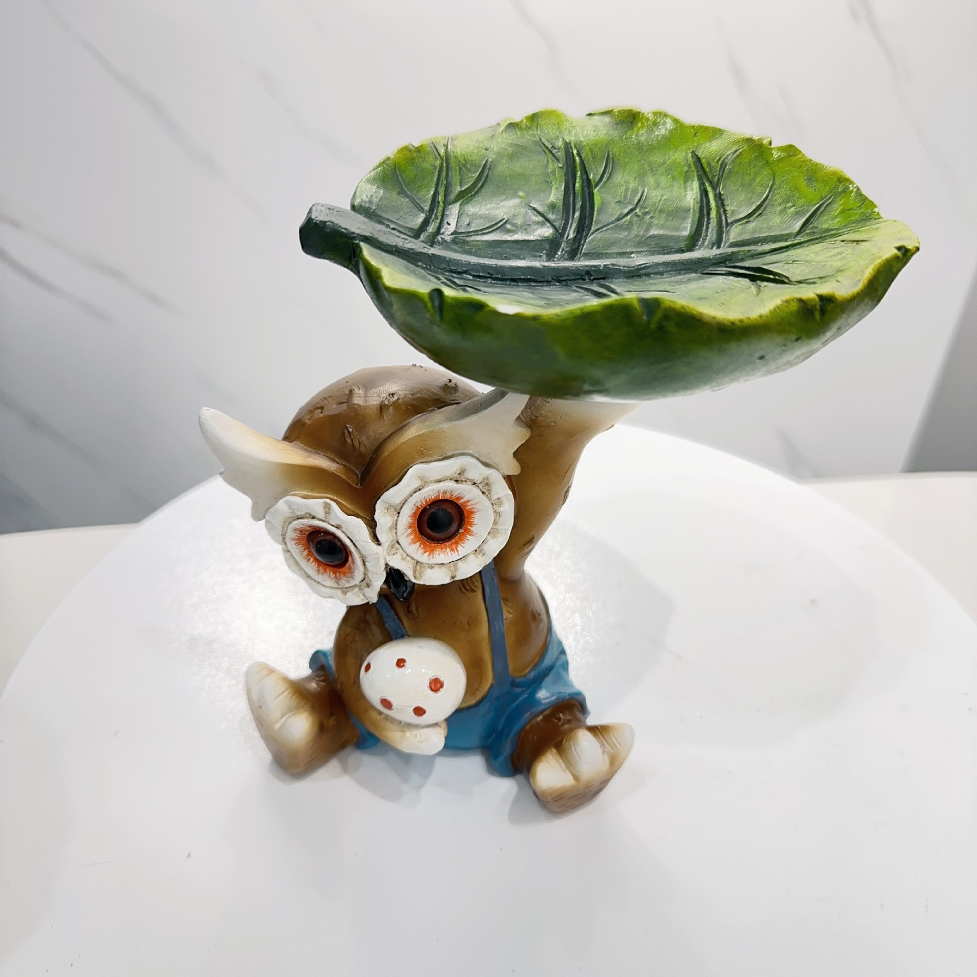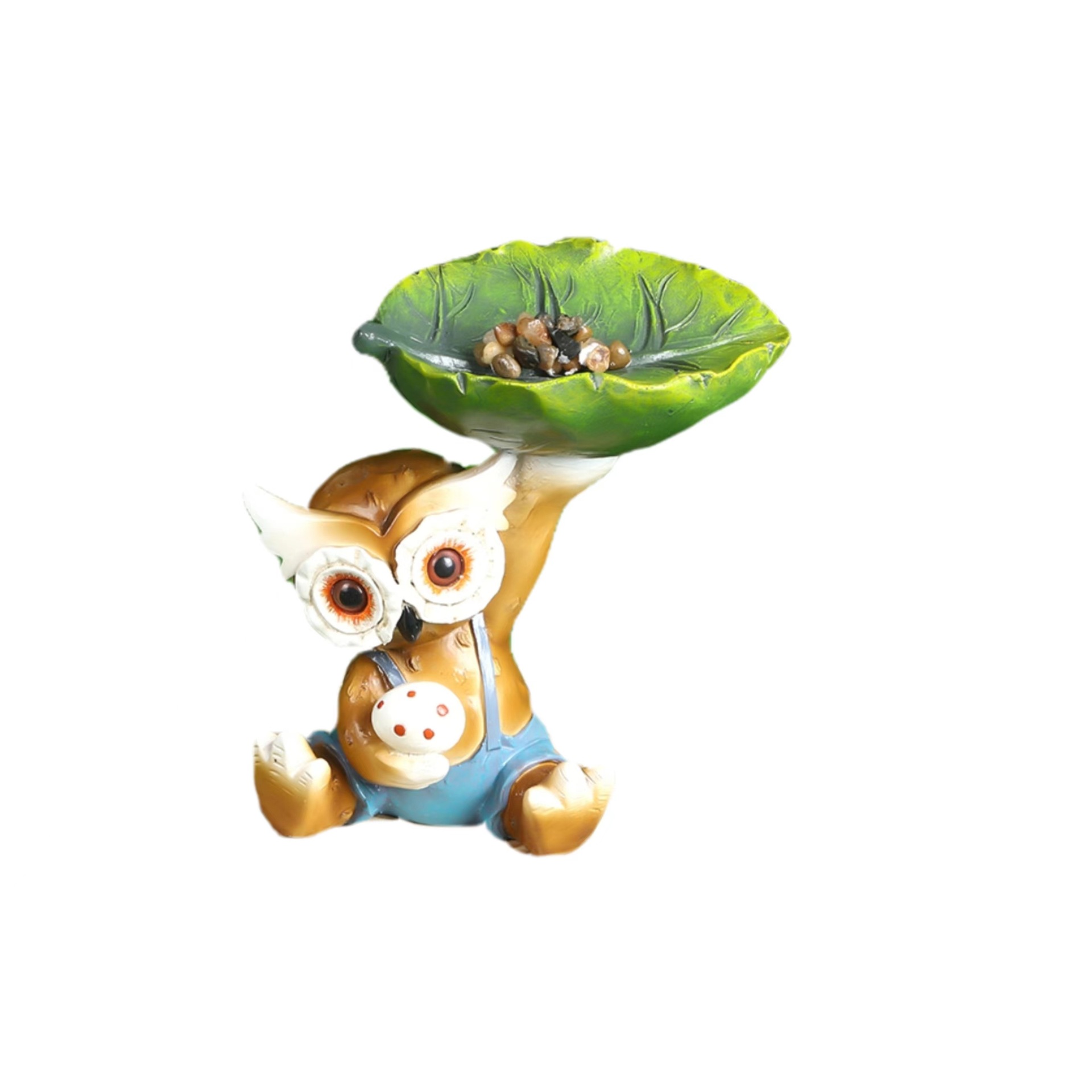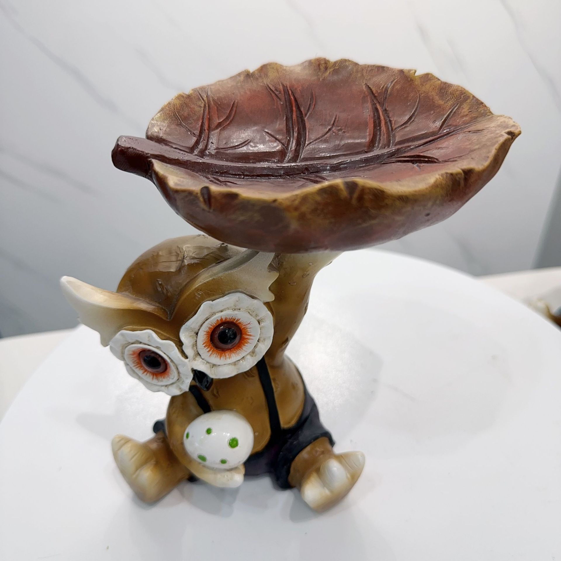 跨境新款韩国猫头鹰叶子喂鸟器雕刻庭院装饰设计树脂工艺品摆件厂