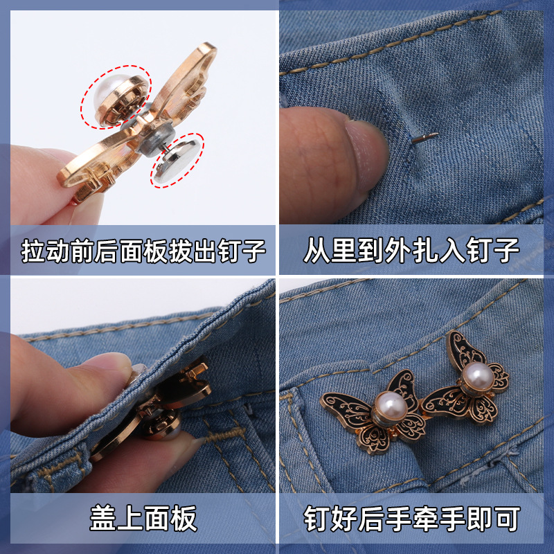 新款平底蝴蝶收腰扣裤子腰围大了改小收腰神器可拆卸免钉收腰纽扣