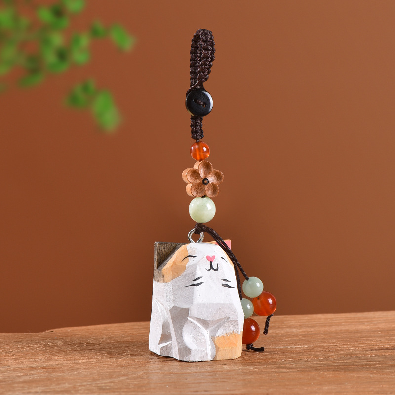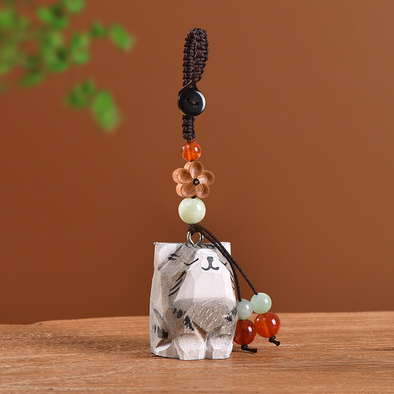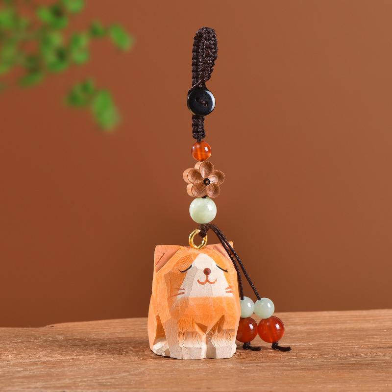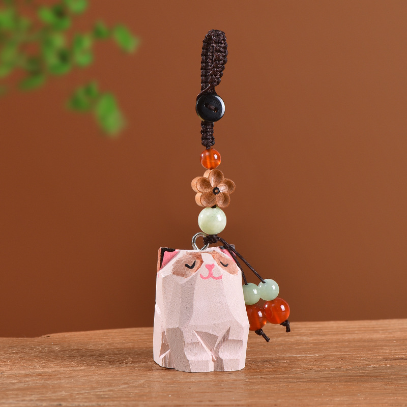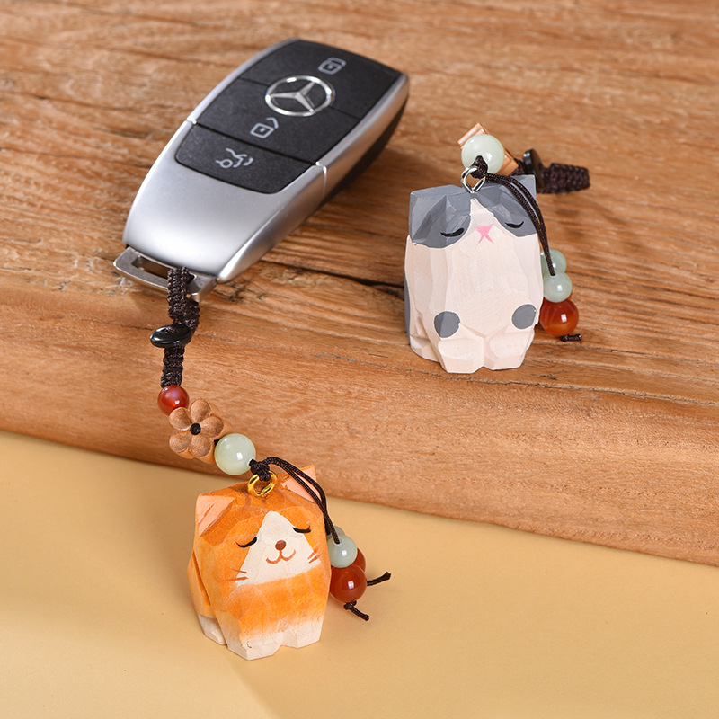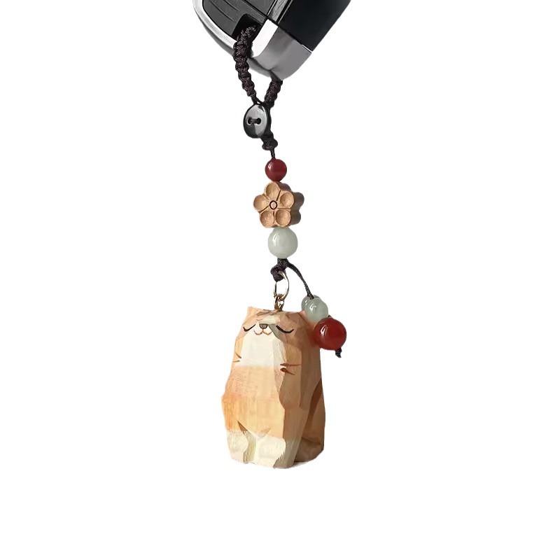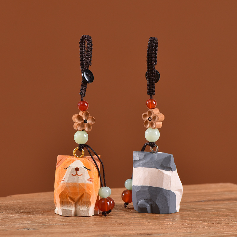 手工木雕猫咪桃木梅花编织钥匙扣汽车钥匙扣书包挂件精致挂饰
