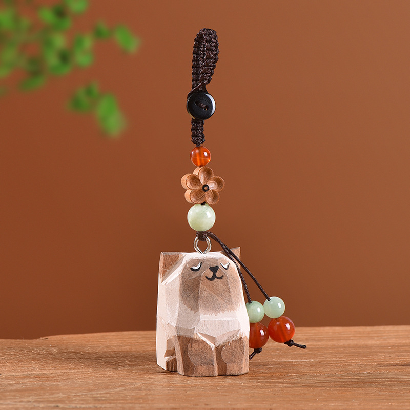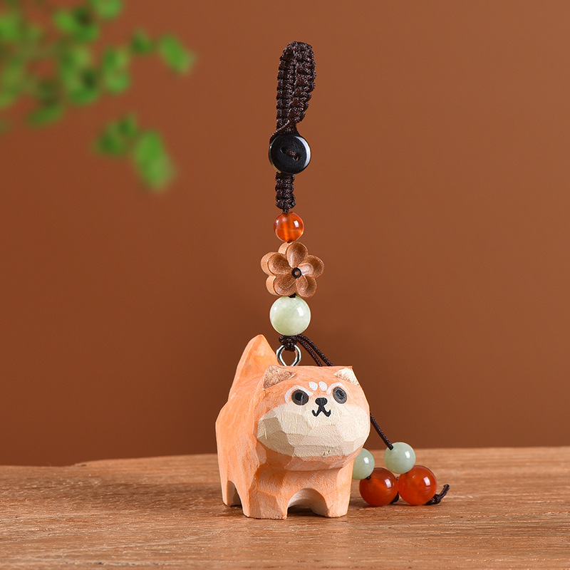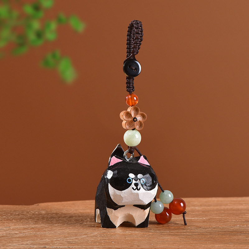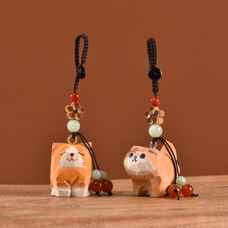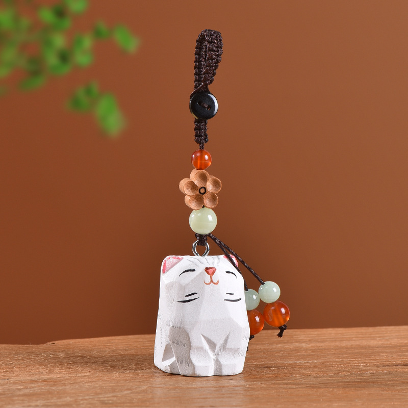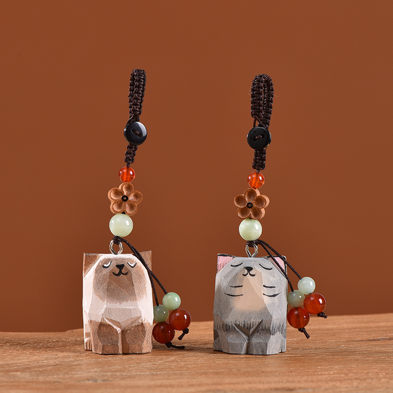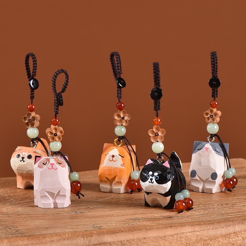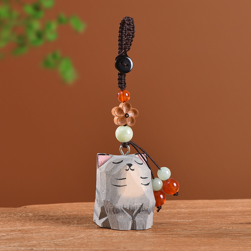 手工木雕猫咪桃木梅花编织钥匙扣汽车钥匙扣书包挂件精致挂饰