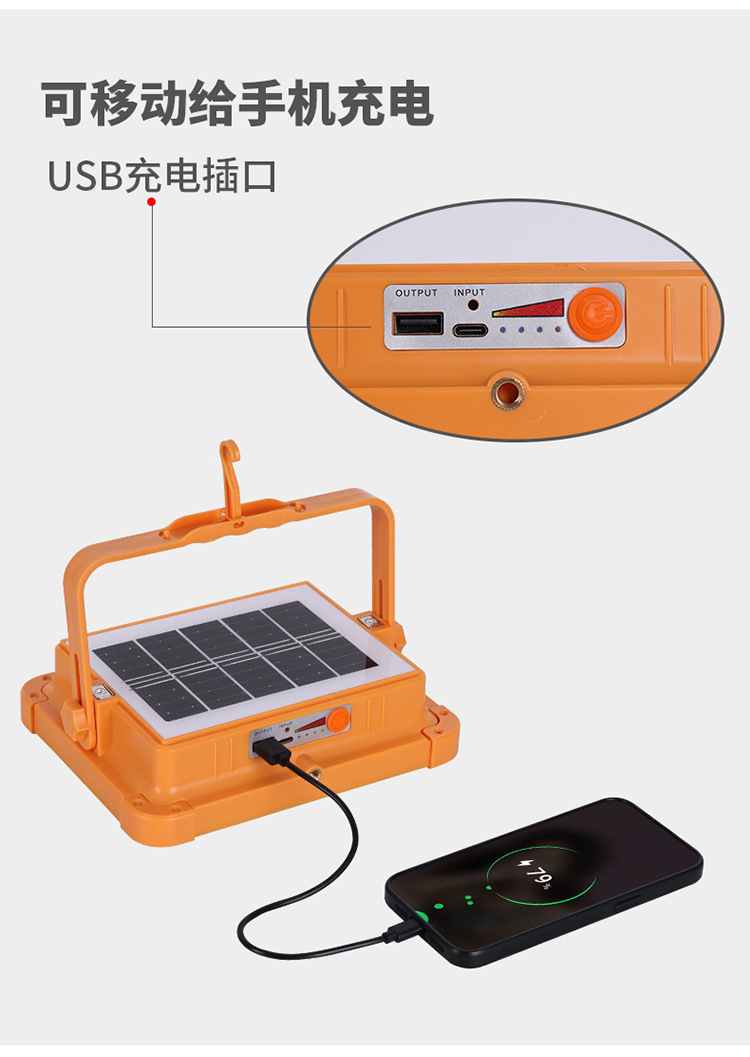 太阳能灯手提灯充电投光灯户外多功能便携超亮家用移动应急照明灯