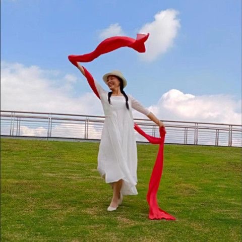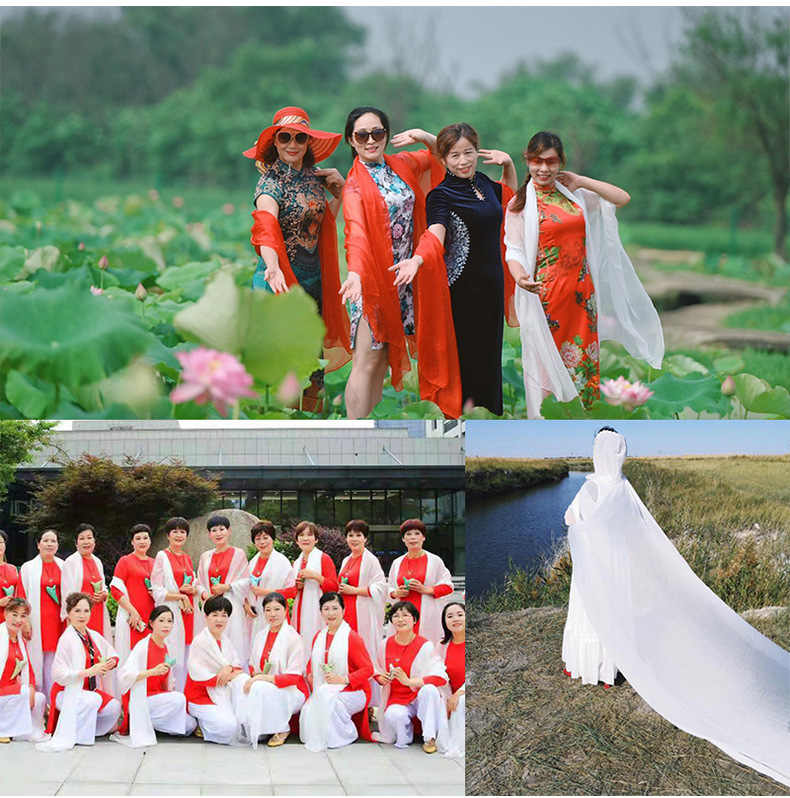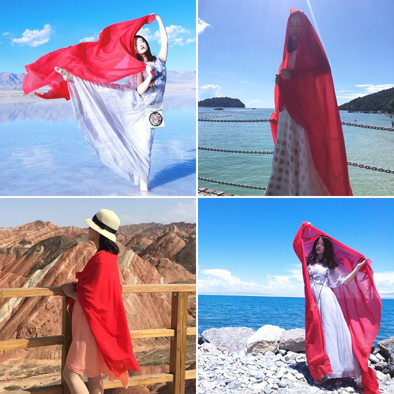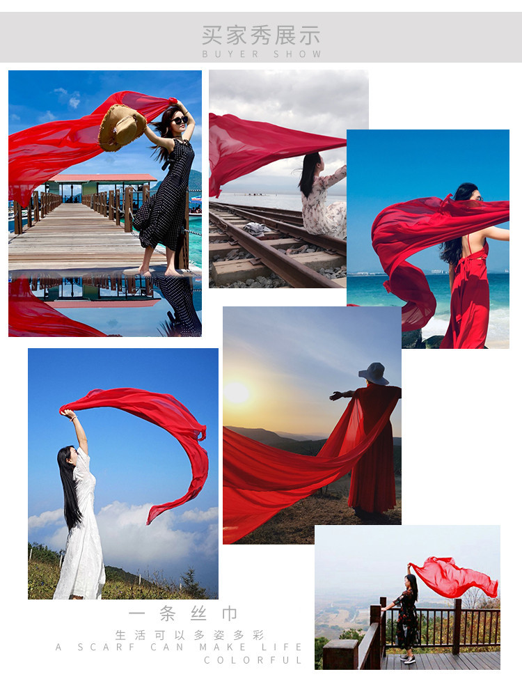 纯色红丝巾女多规格跳舞走秀薄款沙滩巾披肩防晒遮阳纱巾舞台装饰