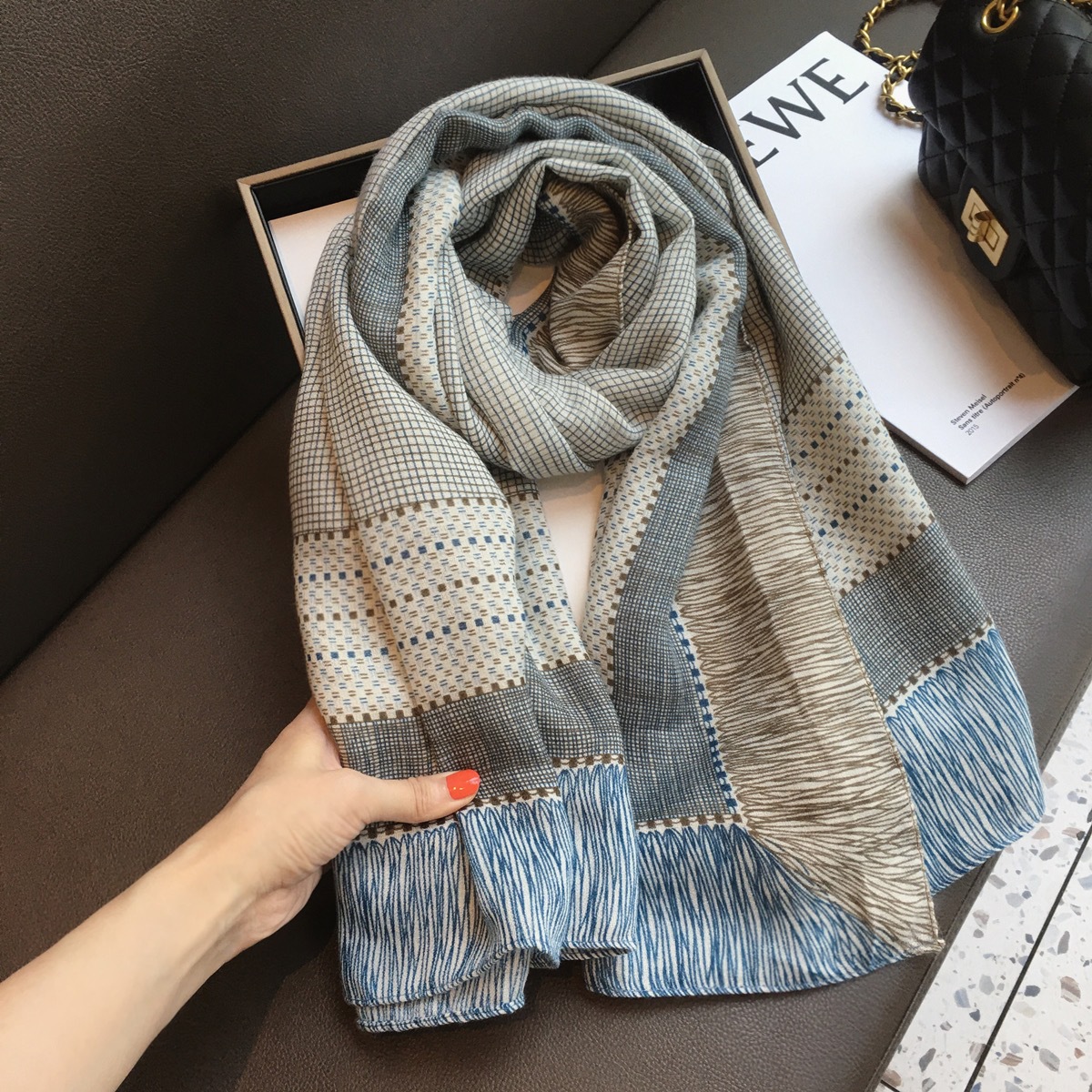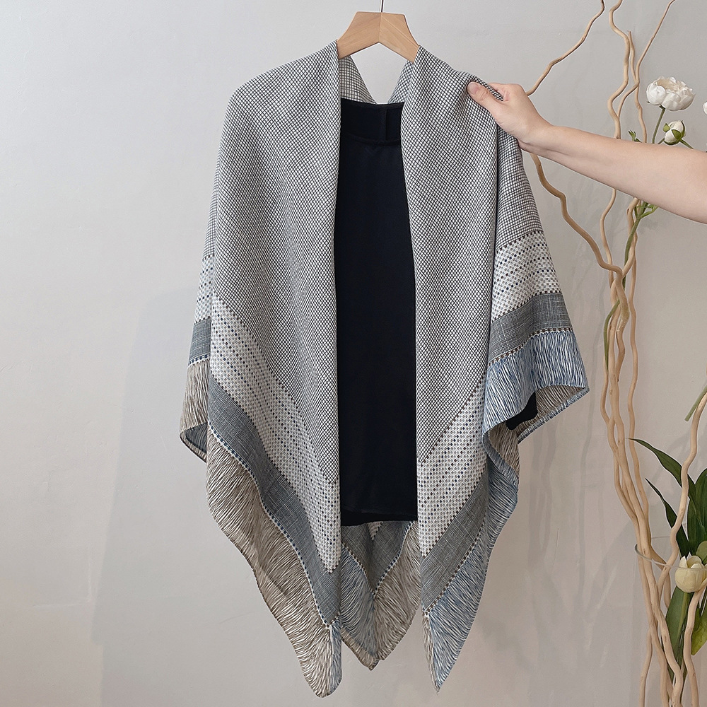2024新款防晒大方巾薄款丝巾空调房外搭披肩小格子亚麻围巾女夏季