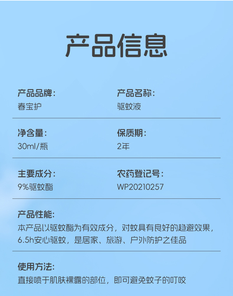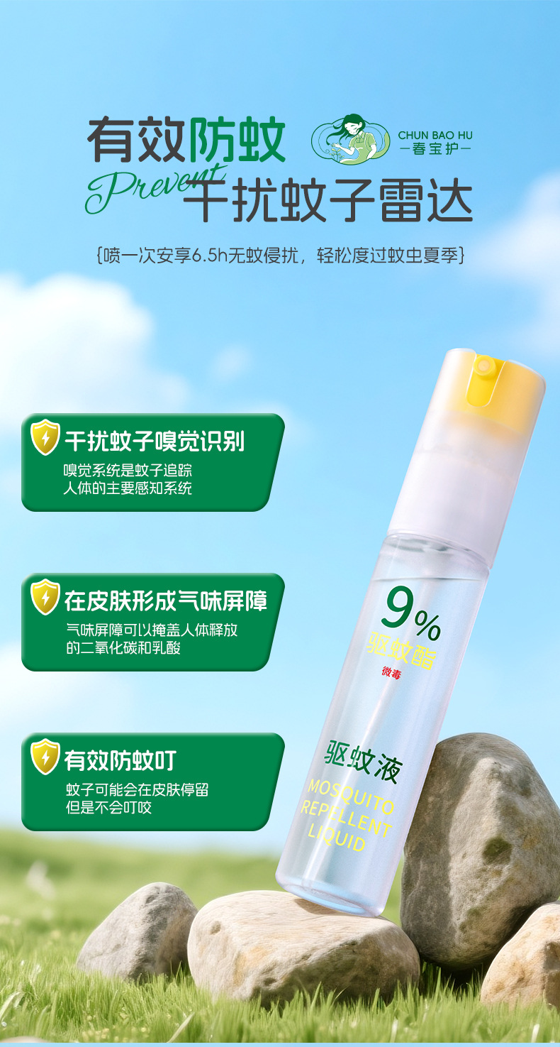春宝护驱蚊喷雾夏季防蚊虫叮咬清爽不黏腻持久清新户外便携防蚊液