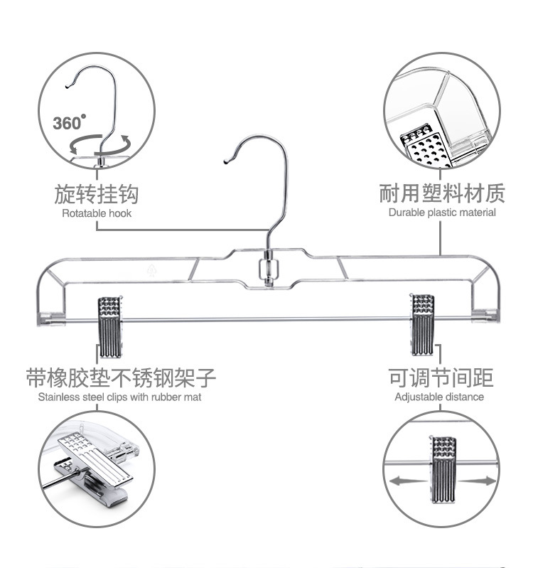 跨境爆款多功能家用收纳塑料裤架加粗透明无痕衣架服装店美式裤架