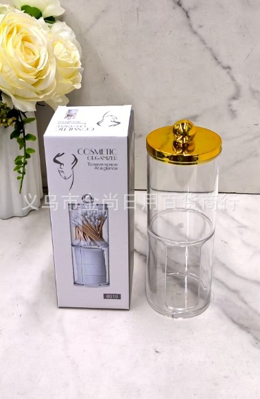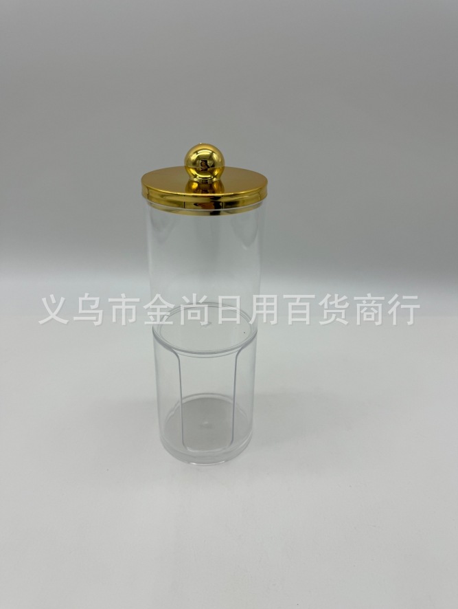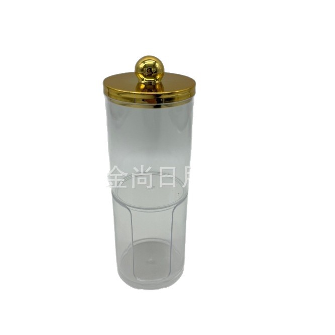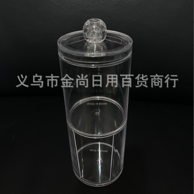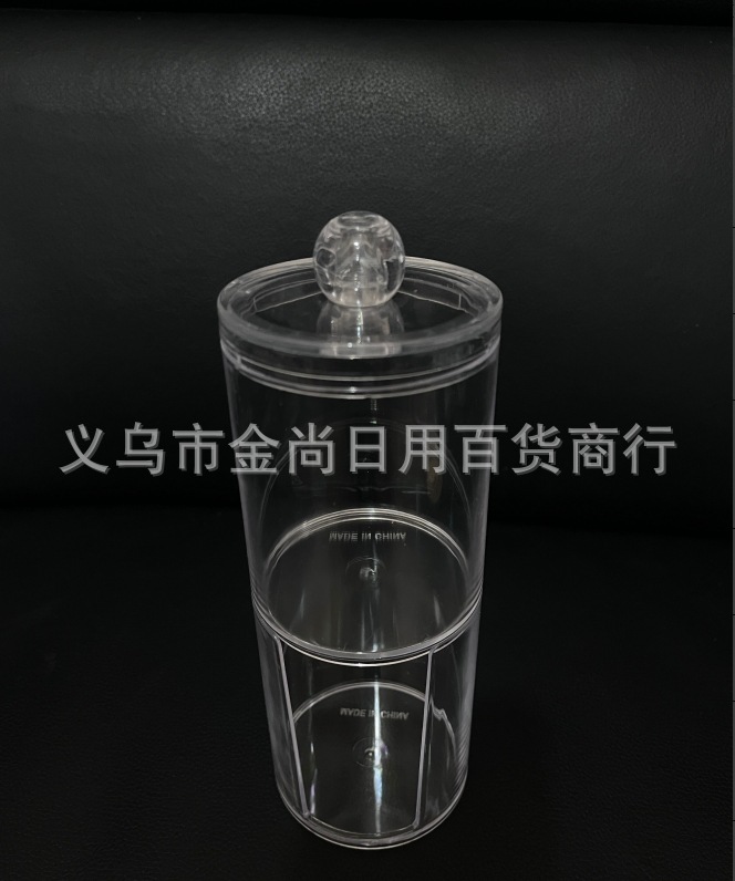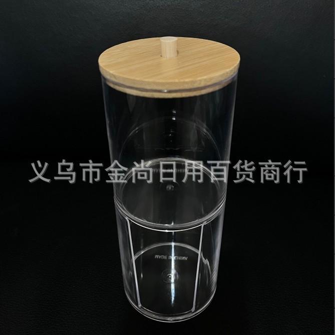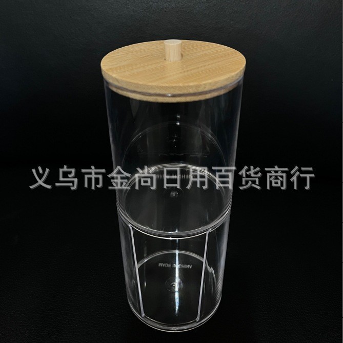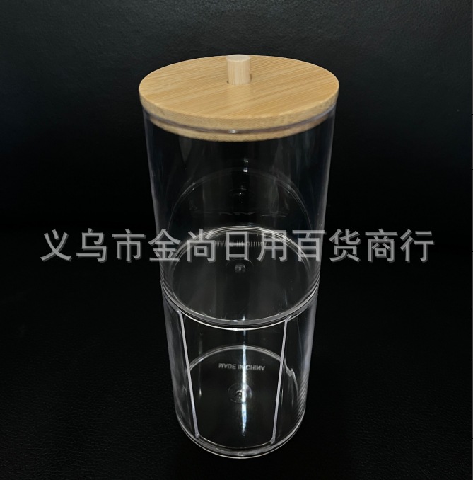 圆柱型木盖塑料盖化妆棉密封收纳罐棉签收纳罐桌面收纳罐