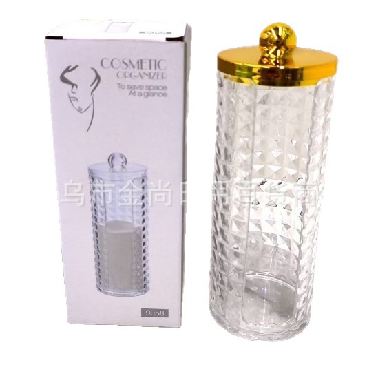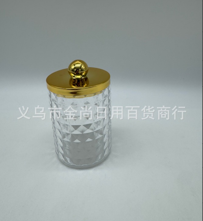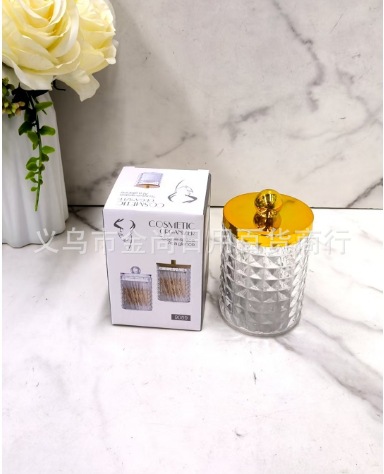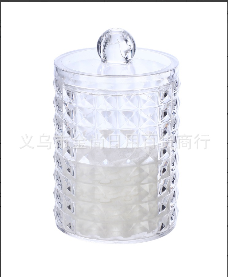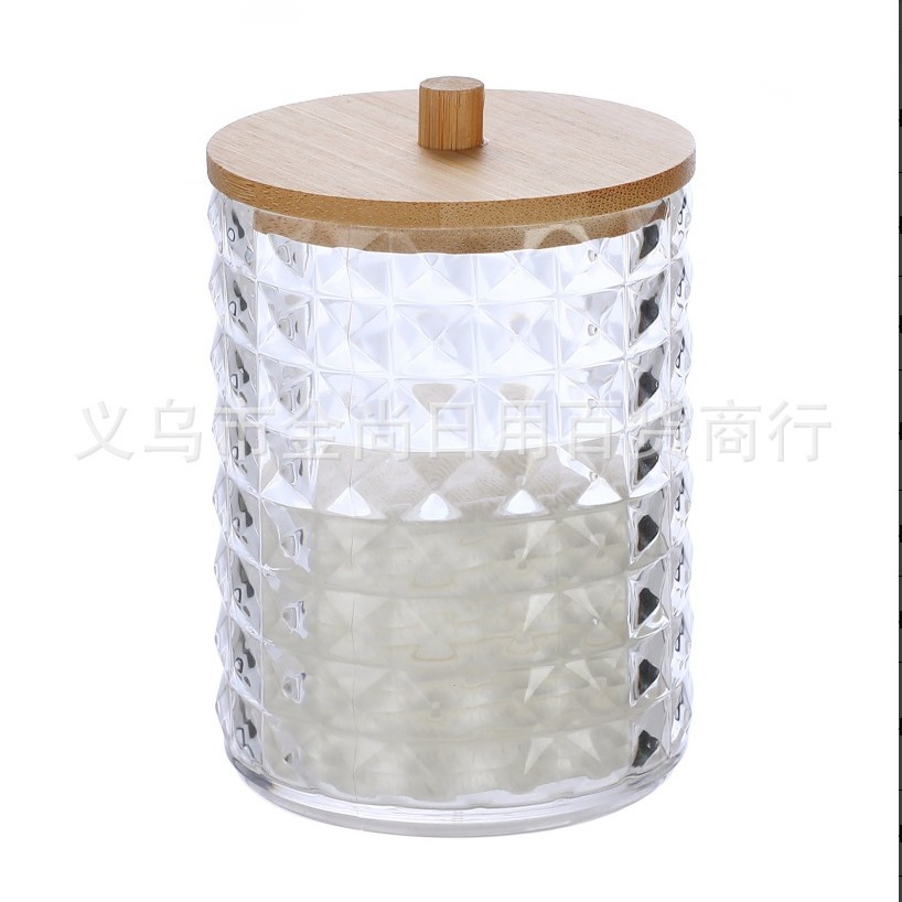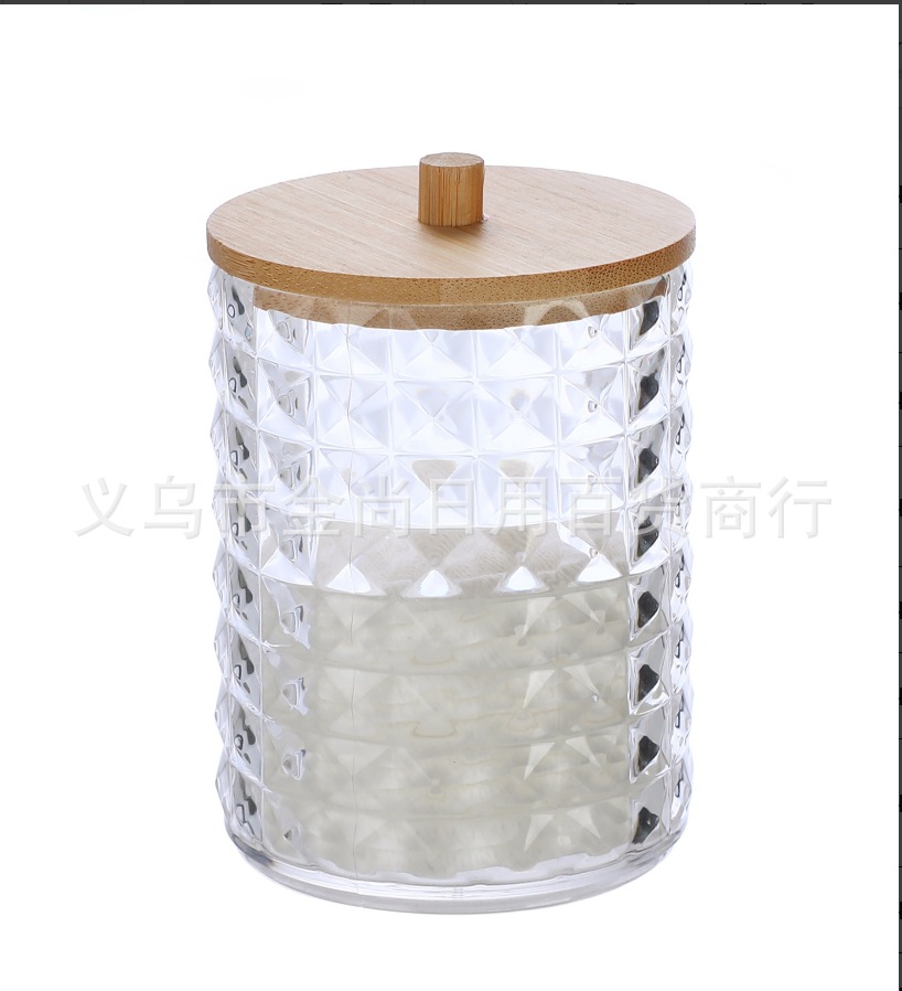 棉签盒竹盖透明盖化妆棉收纳盒化妆品整理盒饰品首饰圆形收纳罐带