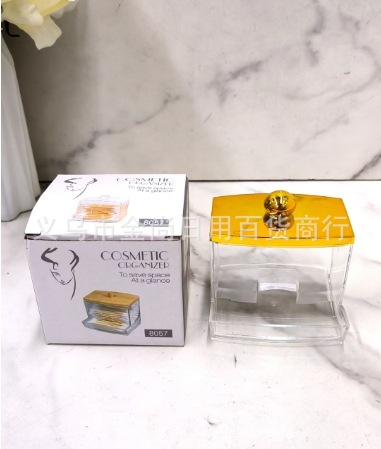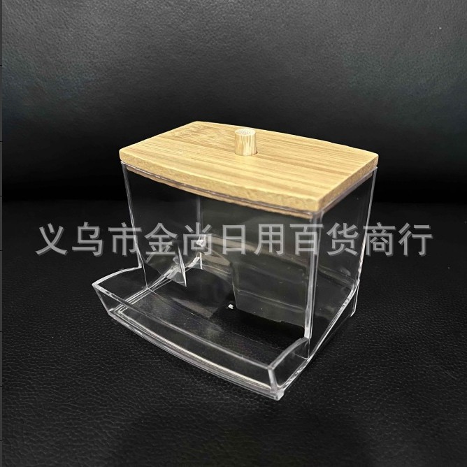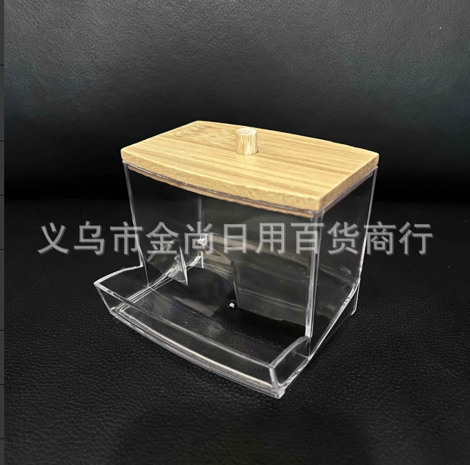 新品透明棉签竹盖塑料盖便携式长形组合化妆棉收纳盒卸妆棉