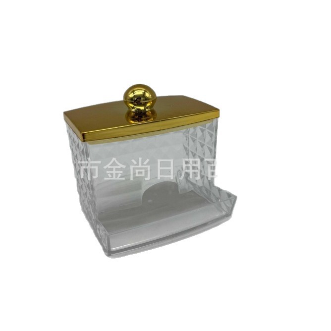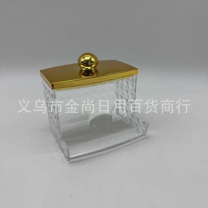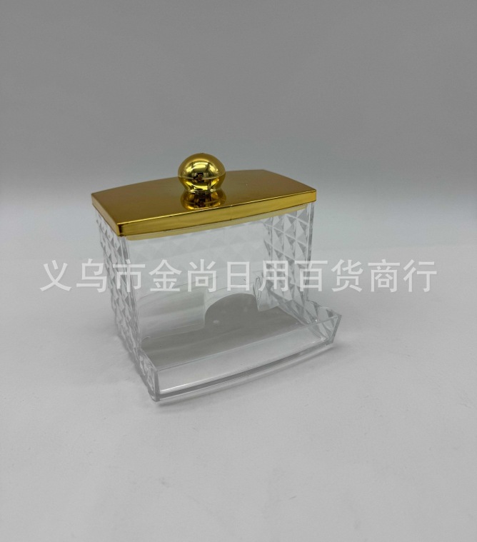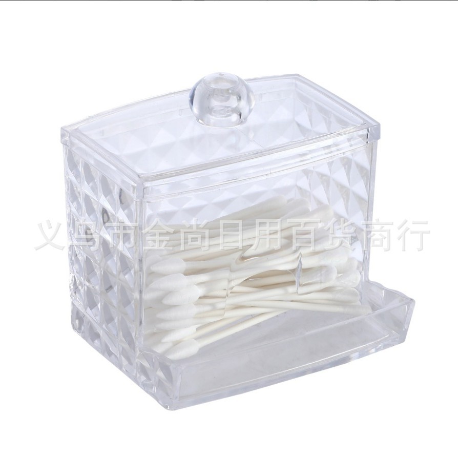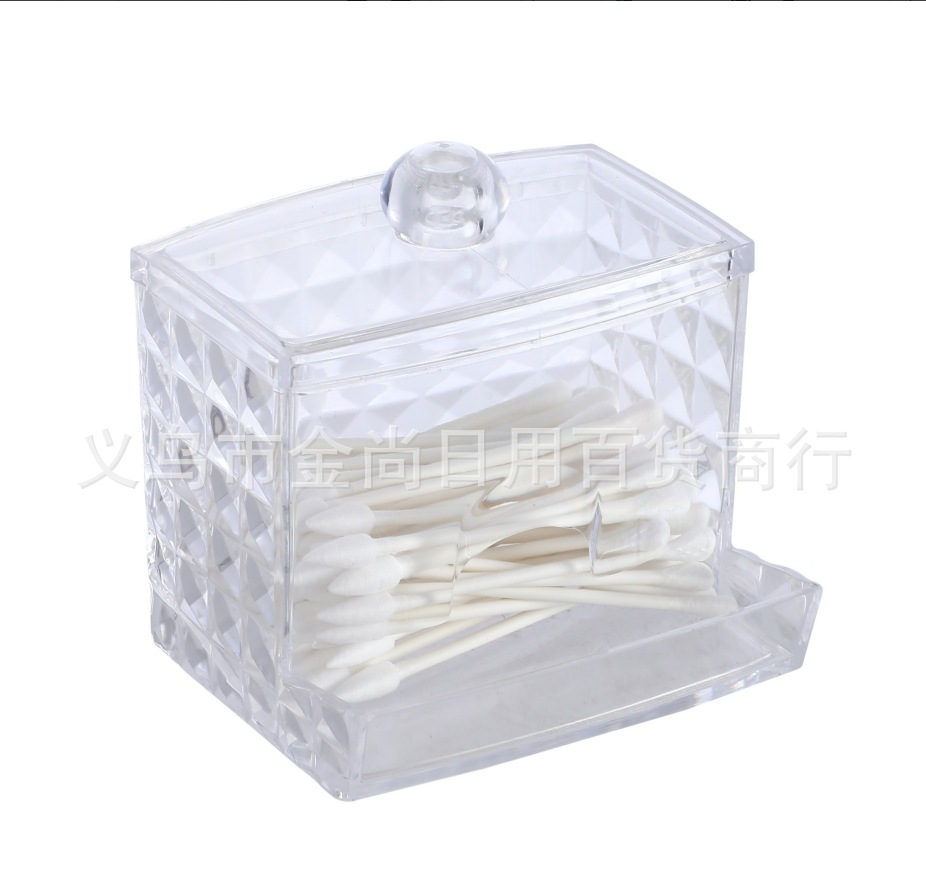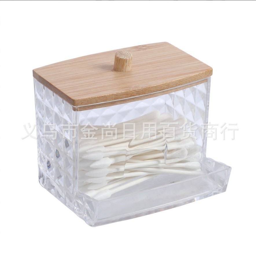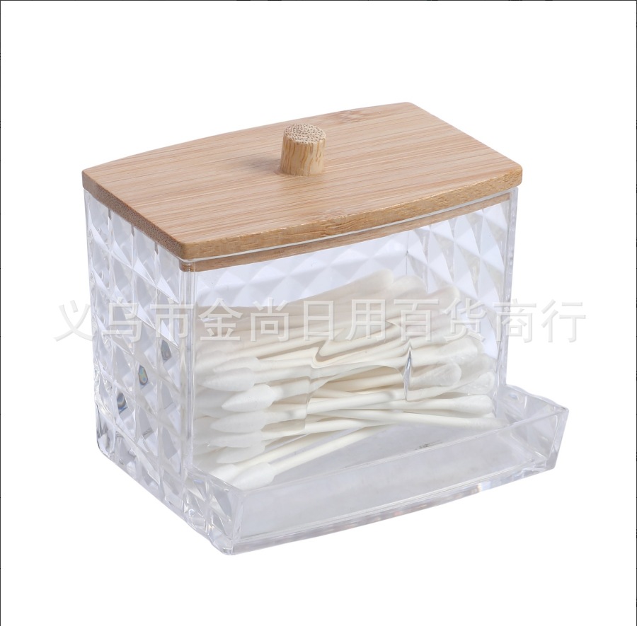 新品透明钻石纹棉签竹盖透明盖便携式长方形化妆棉收纳盒