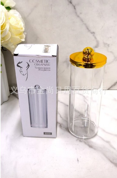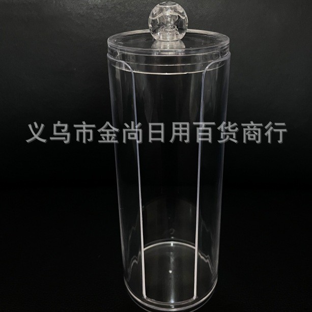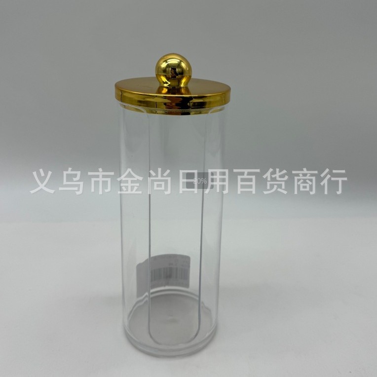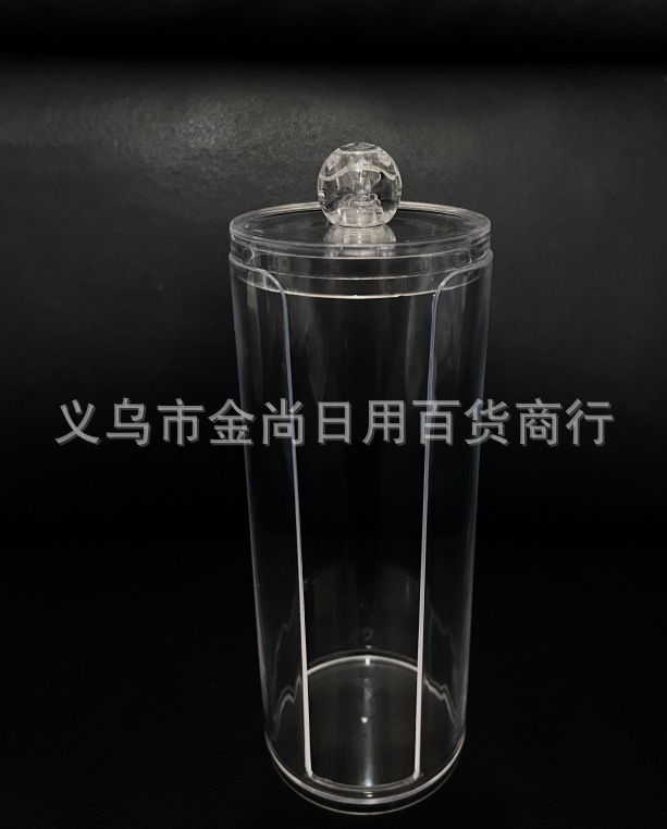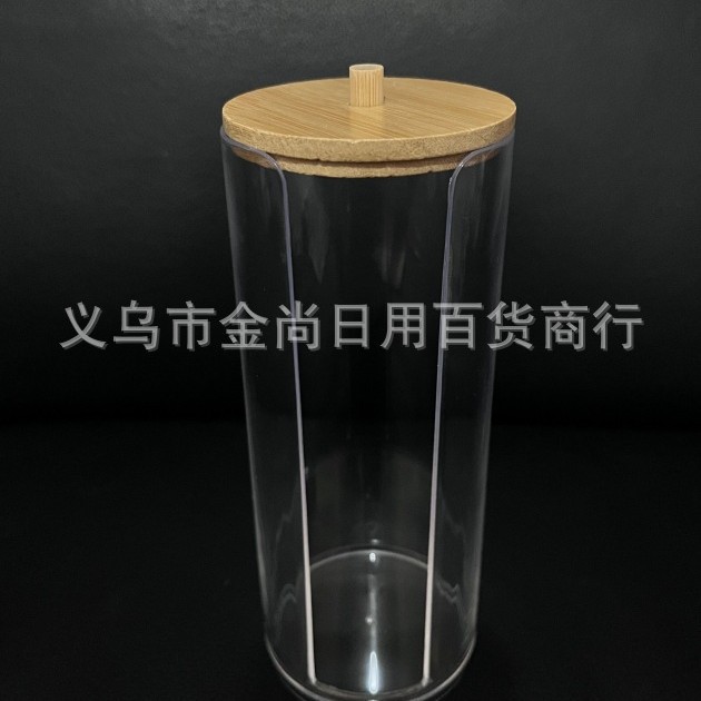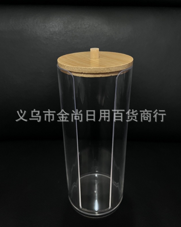 大号长圆柱型收纳盒化妆棉存放罐竹木盖电镀盖透明盖化妆刷收纳盒