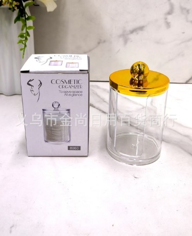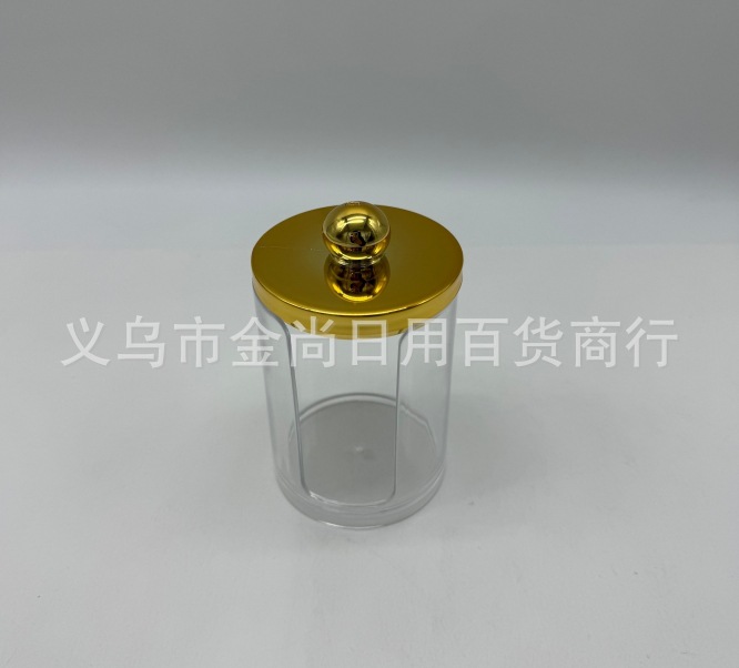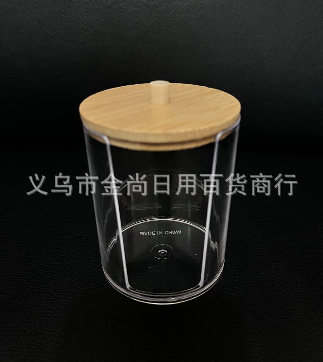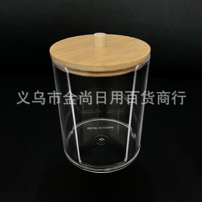 小号透明电镀木盖化妆棉收纳盒,圆形棉签收纳盒,组合式收纳批发