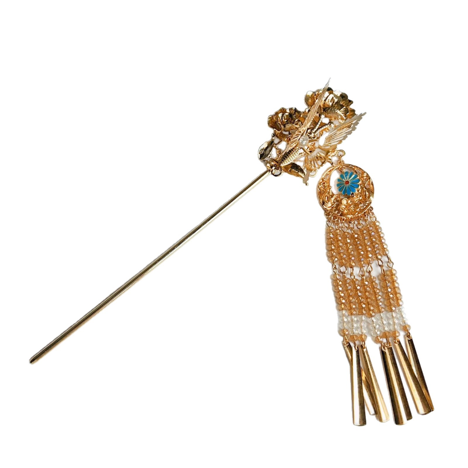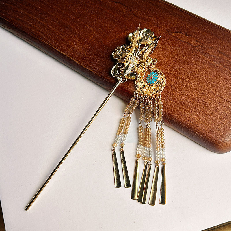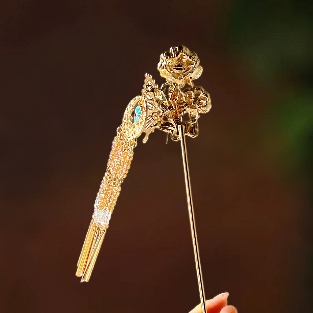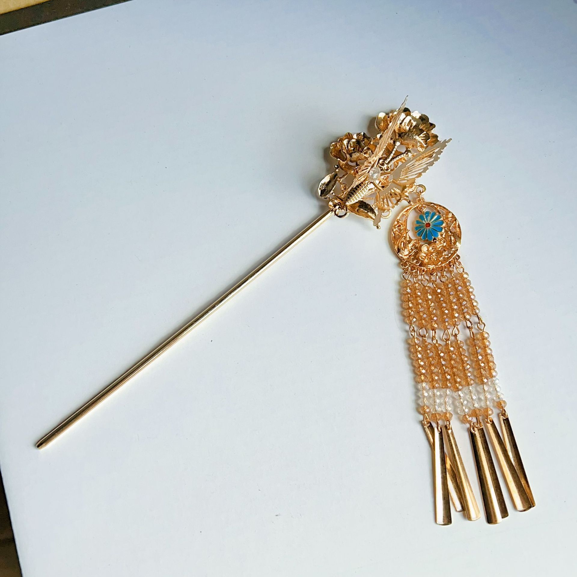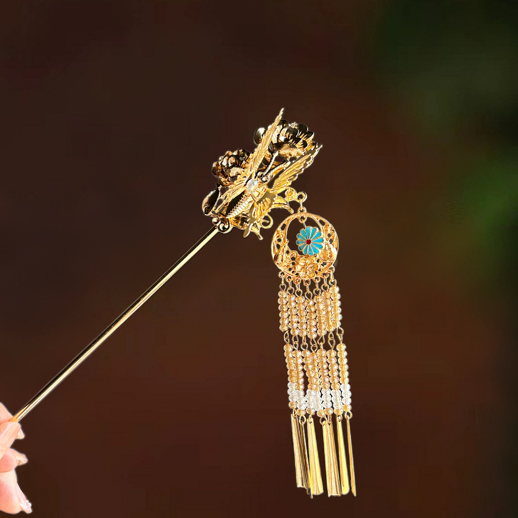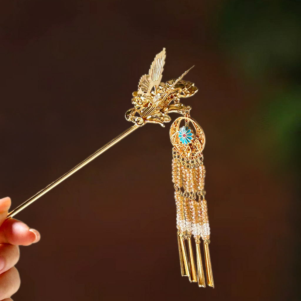 颤蝶花朵发簪女新中式高级感发饰簪子古风头饰月牙流苏发钗步摇