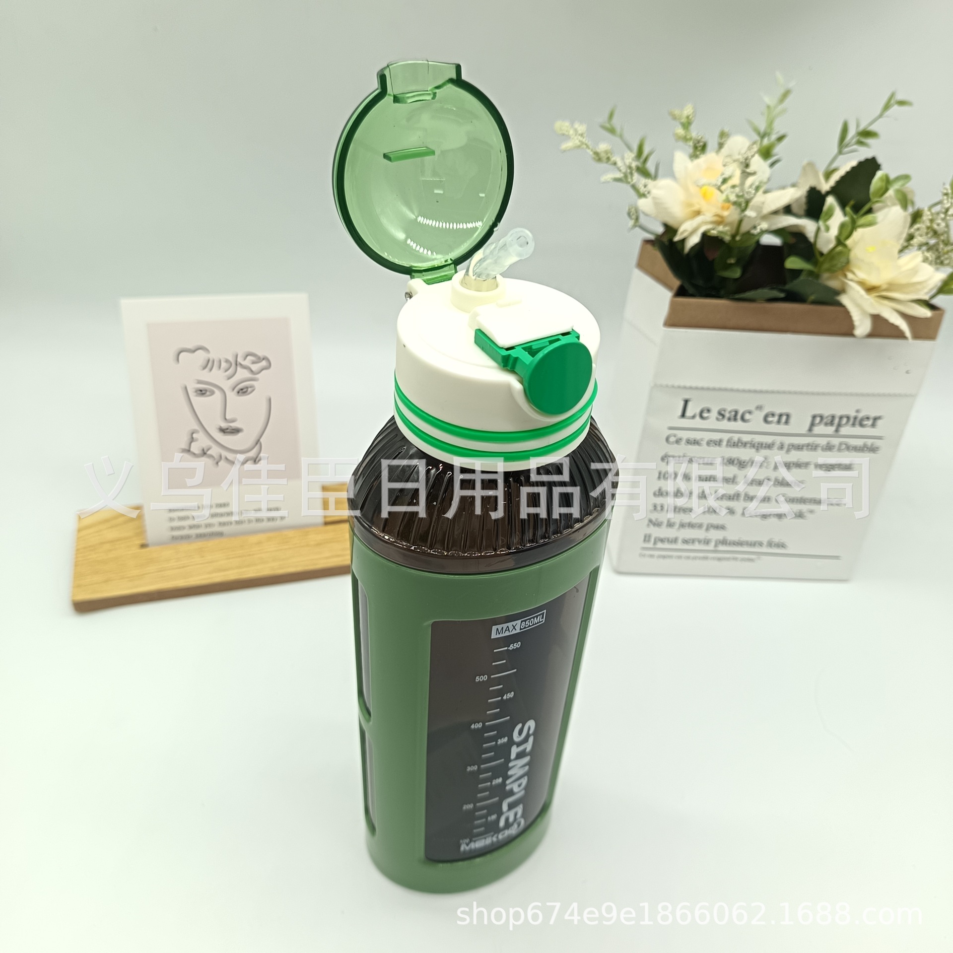 夏季大容量吸管杯弹跳盖男女便携手提太空杯高颜值简约扁壶款跨境