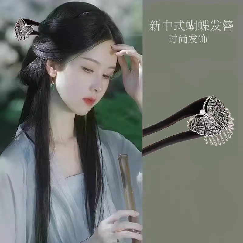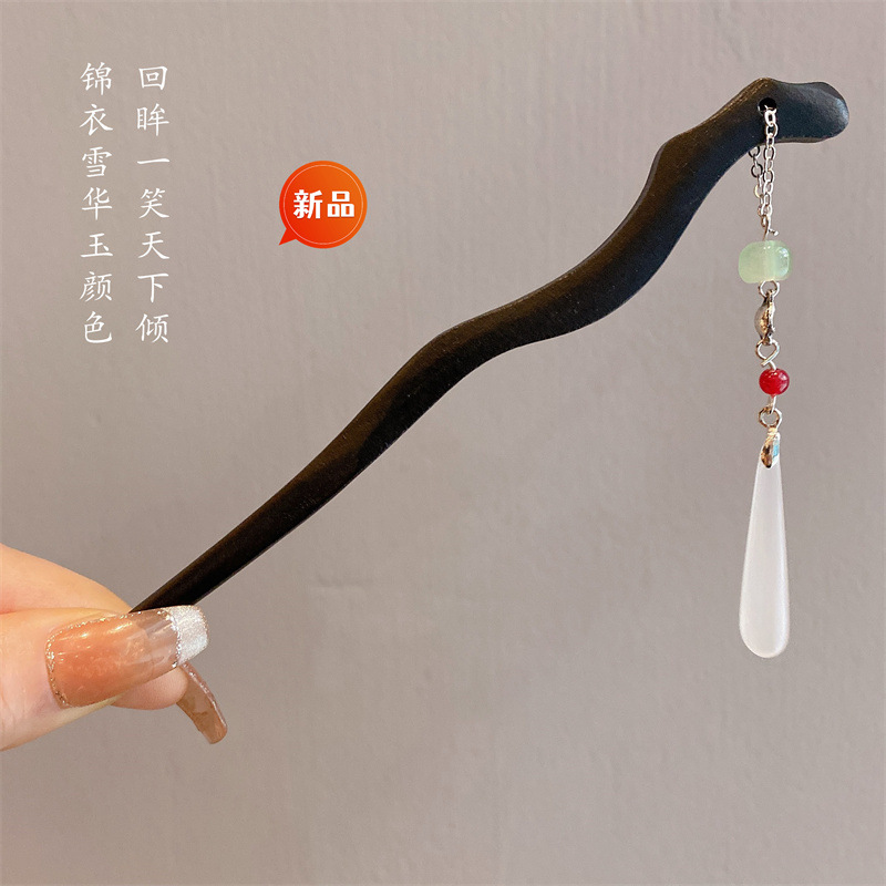 新中式古风发簪女木质钗子流苏步摇旗袍配饰盘发器简约簪子