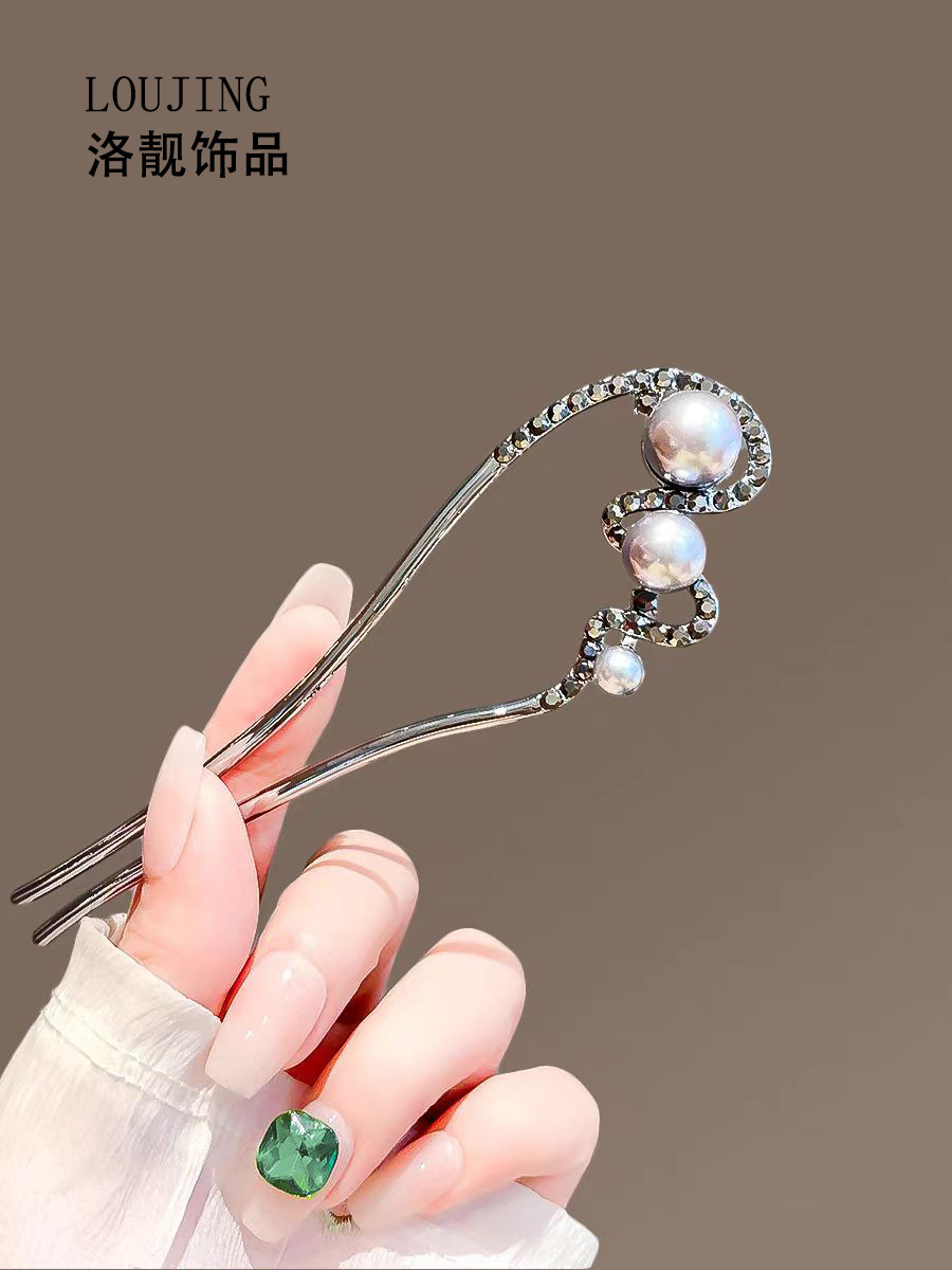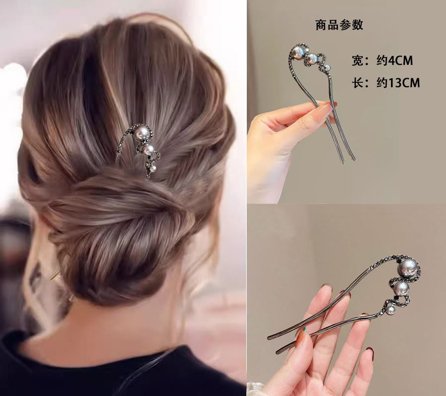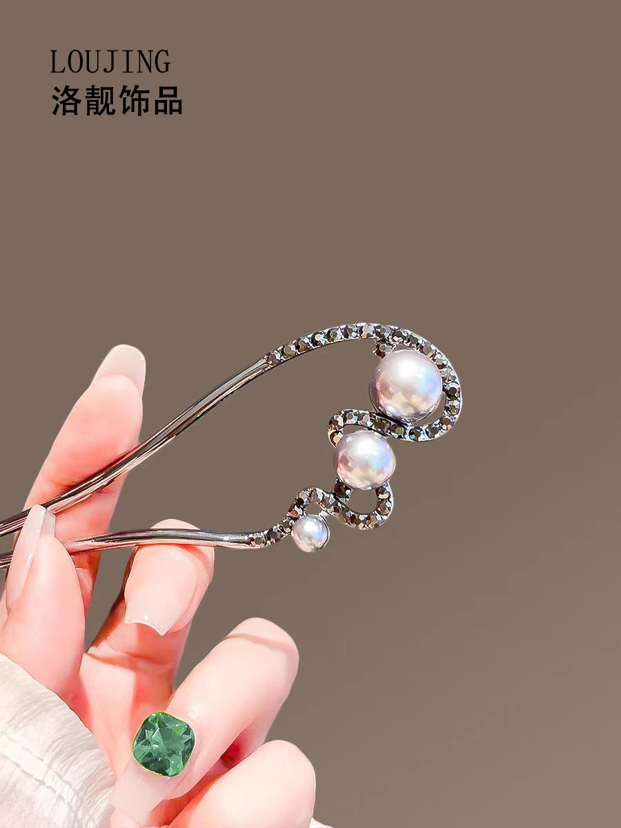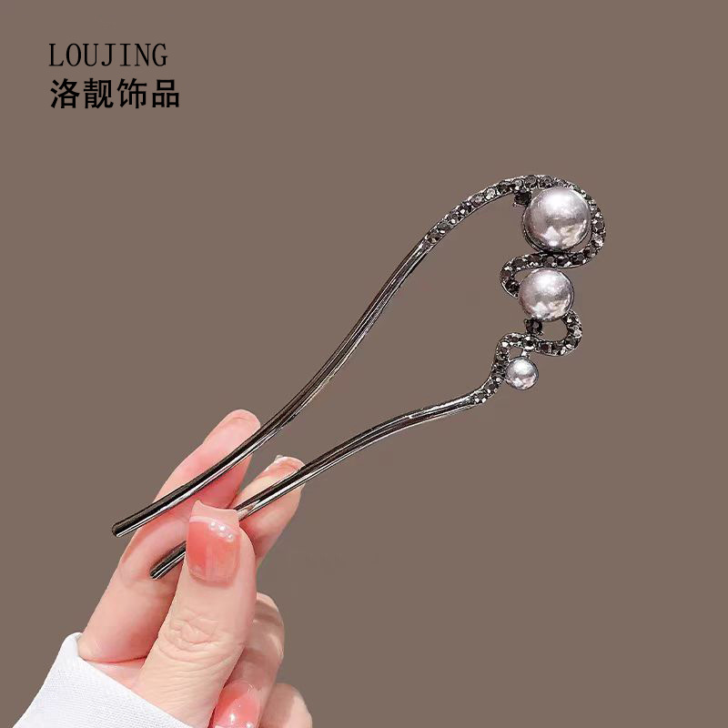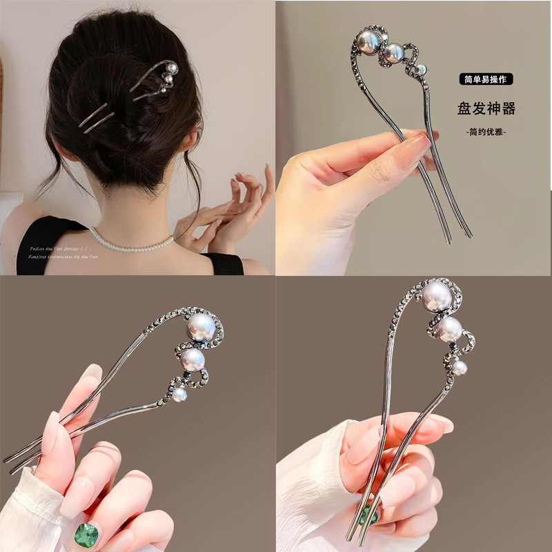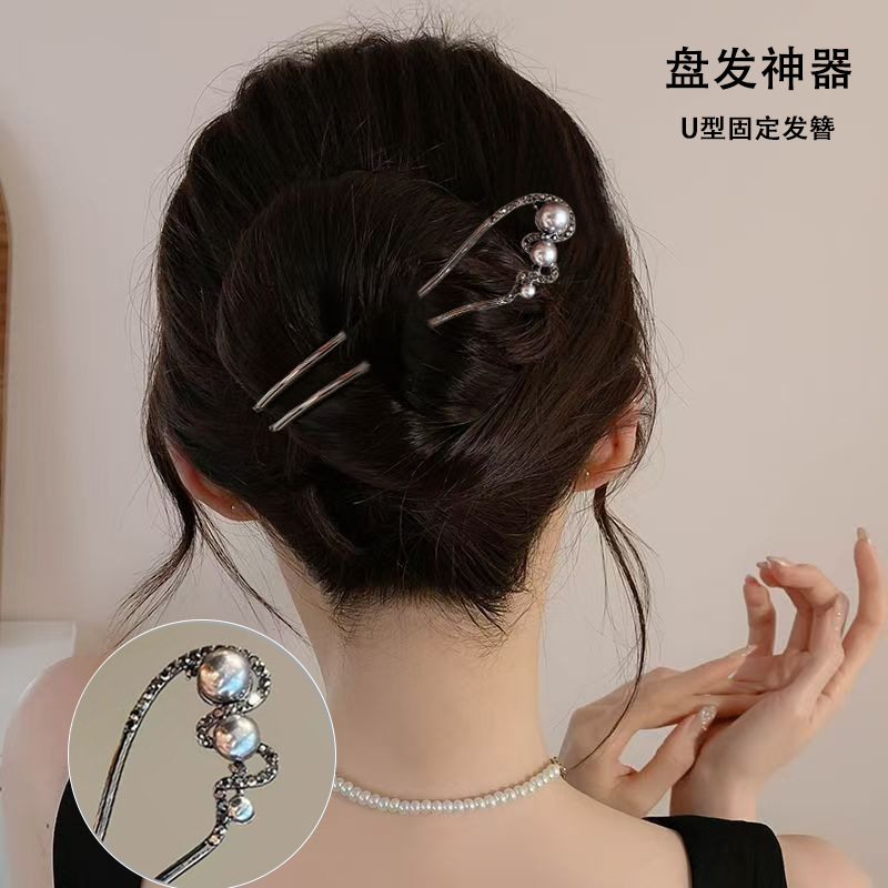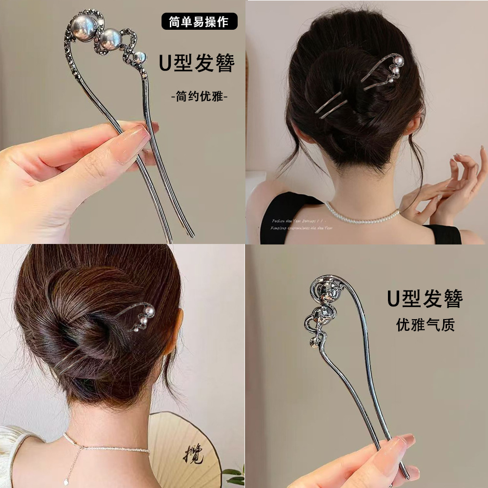 高级感珍珠u型发簪女新中式盘发神器后脑勺簪子2025新款发钗头饰