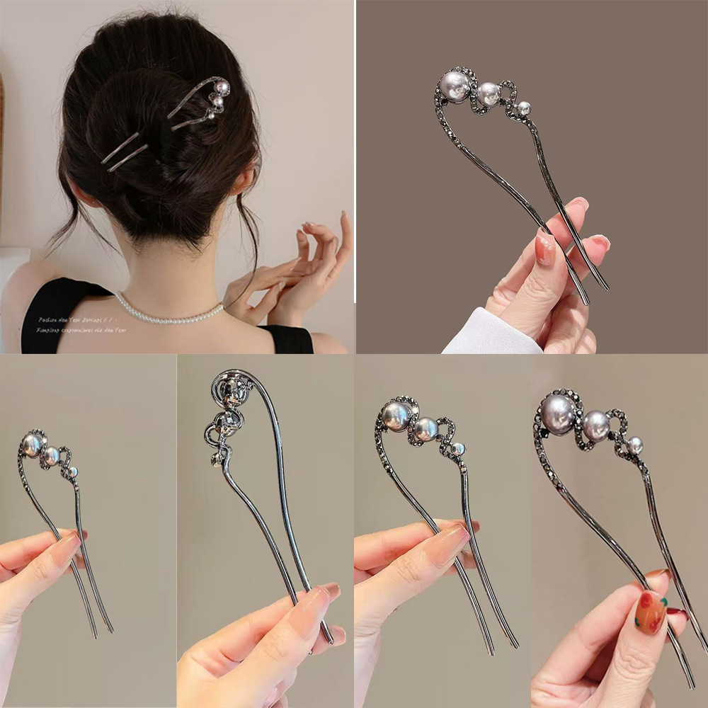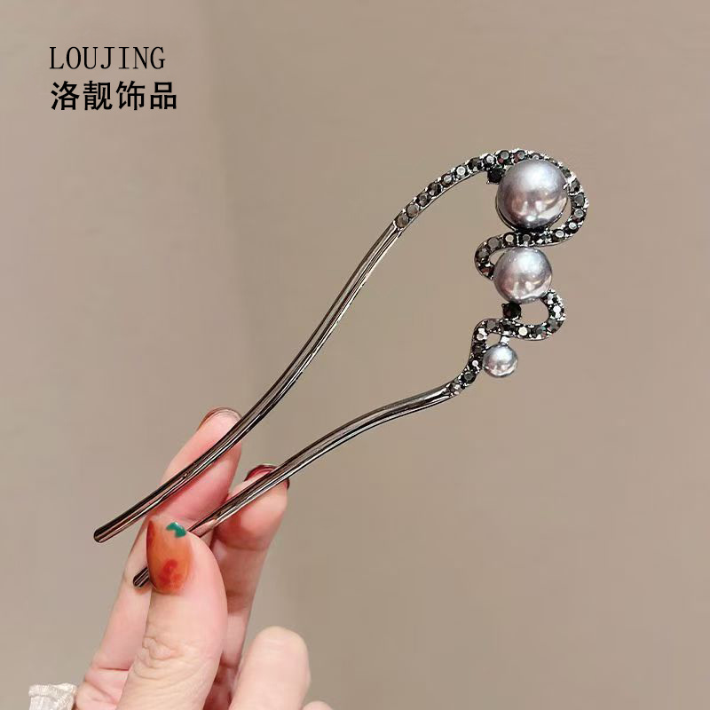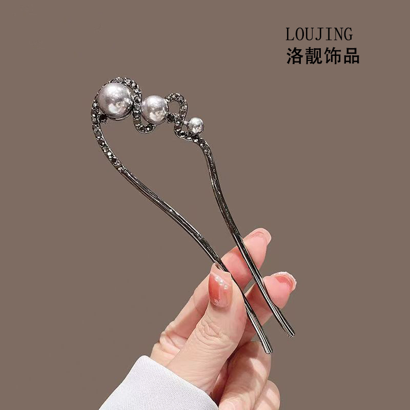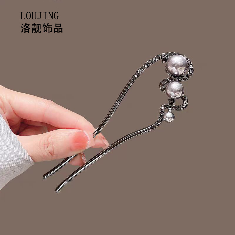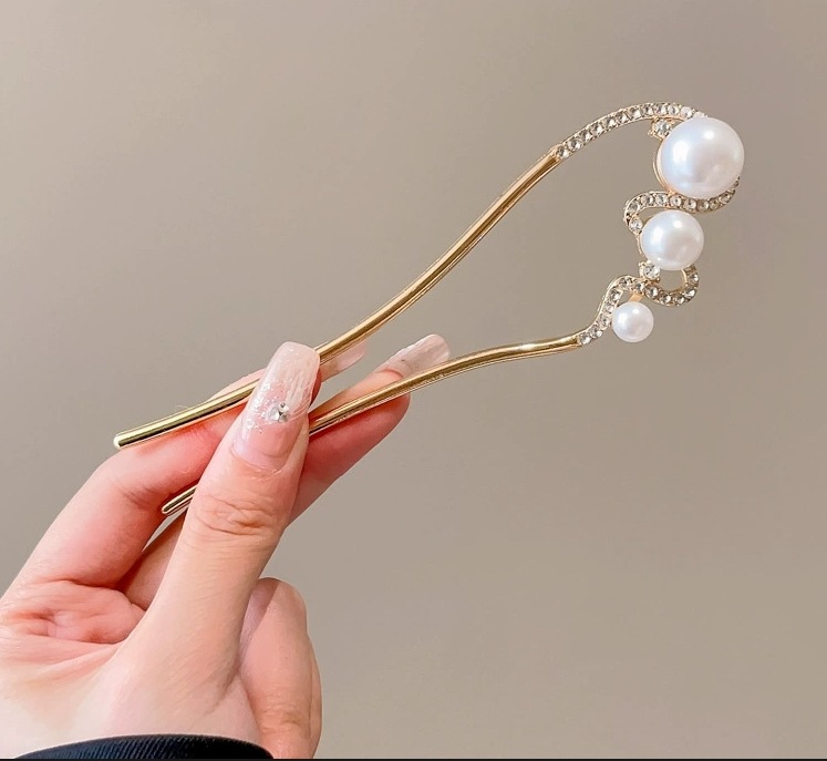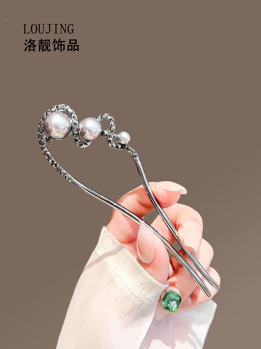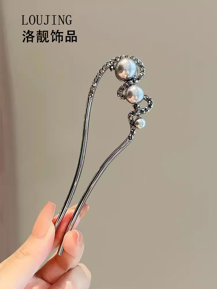 高级感珍珠u型发簪女新中式盘发神器后脑勺簪子2025新款发钗头饰