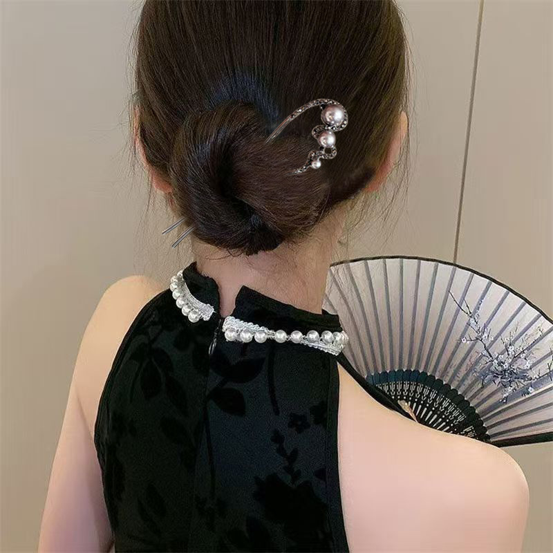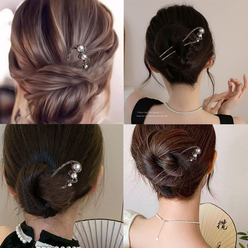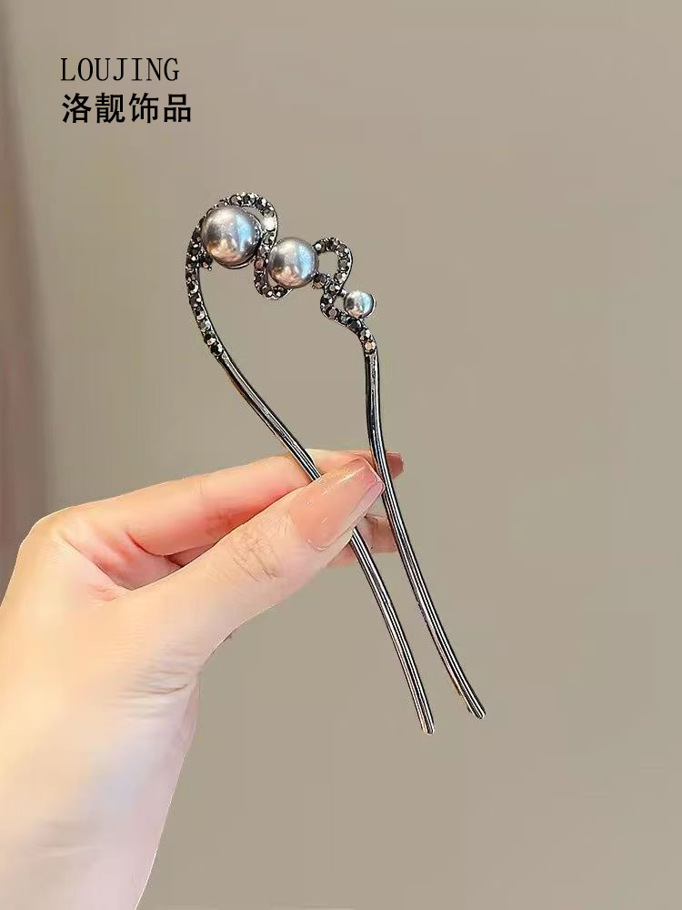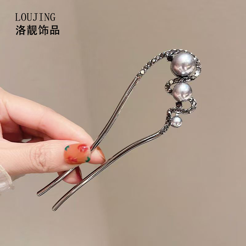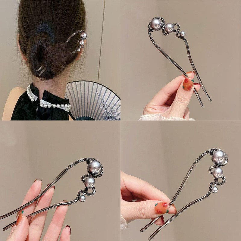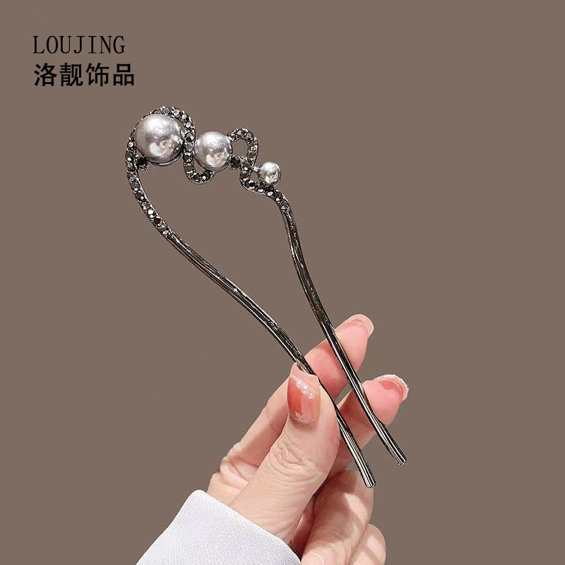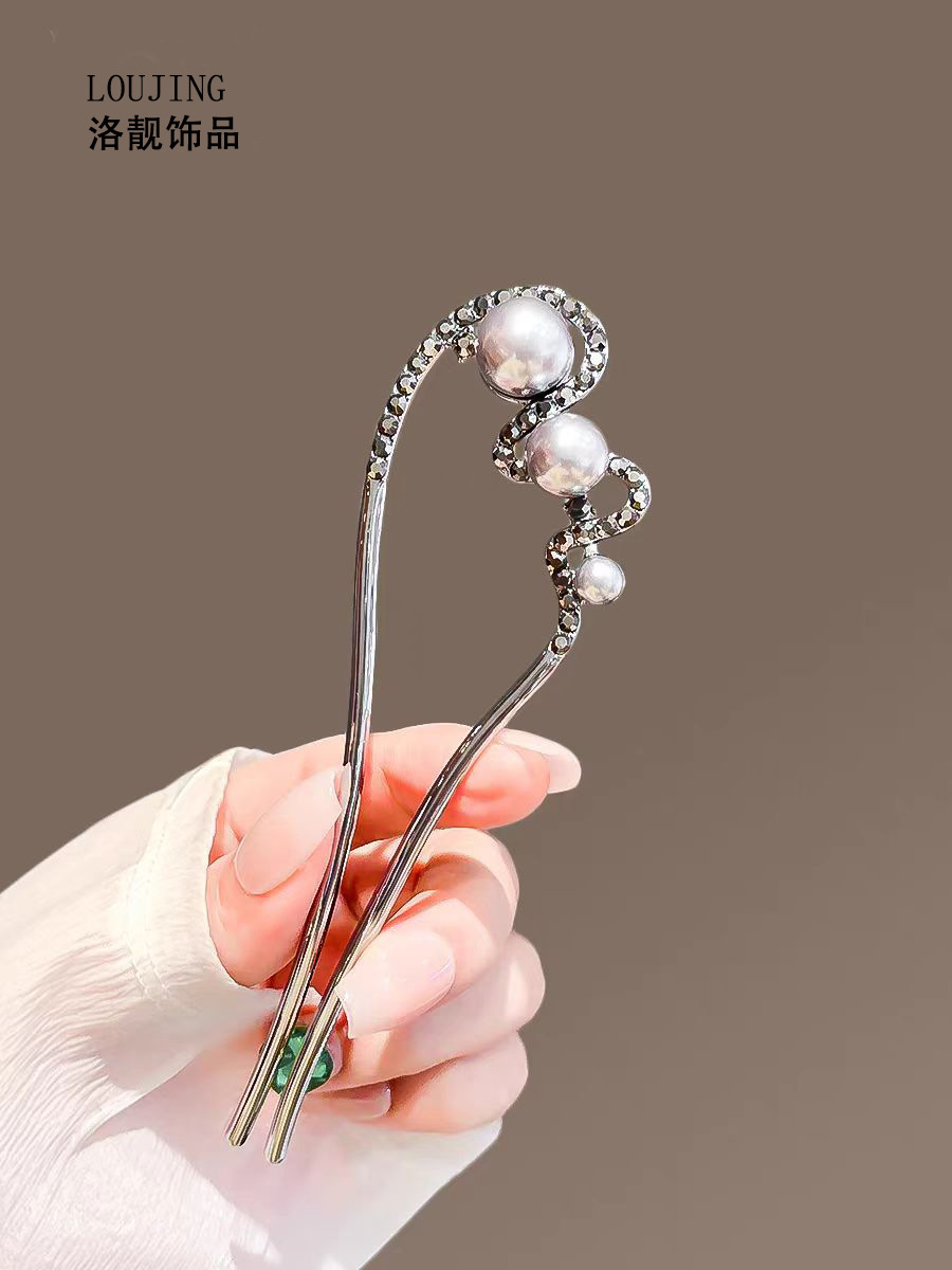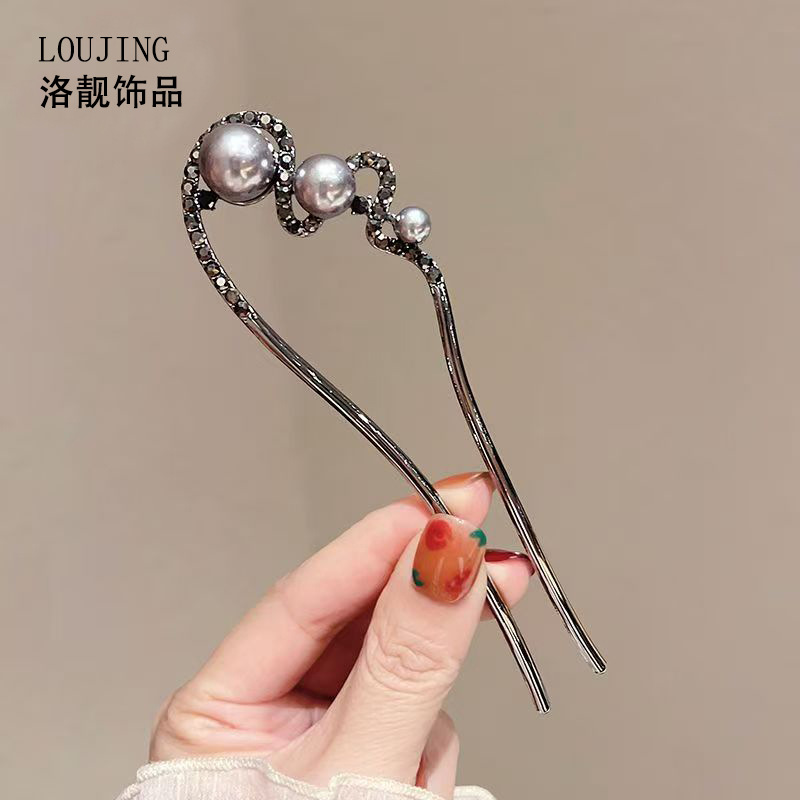 高级感珍珠u型发簪女新中式盘发神器后脑勺簪子2025新款发钗头饰