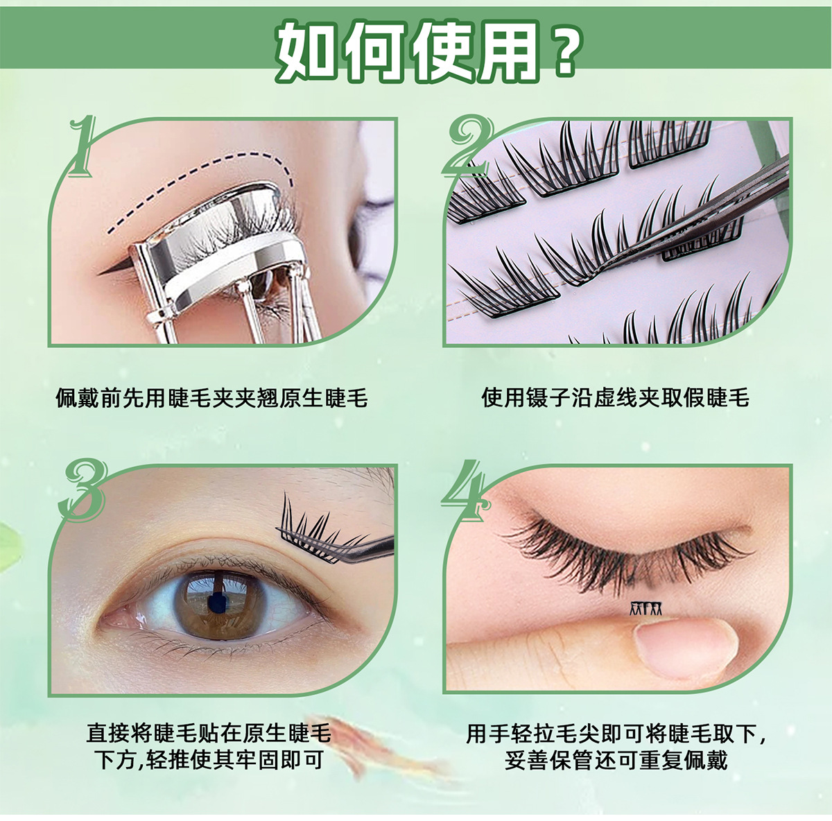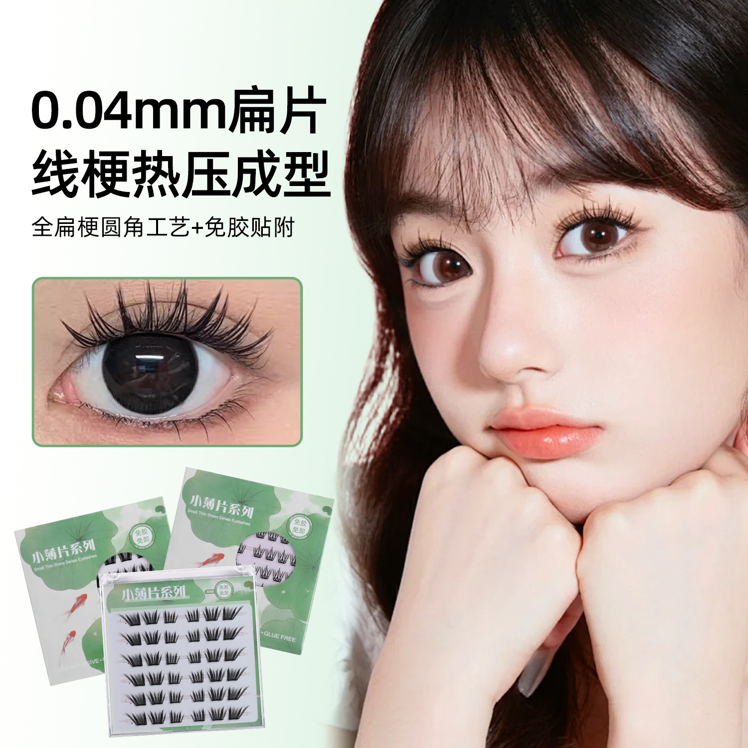 东南亚跨境免胶假睫毛 小薄片新中式自然女超薄自粘眼睫毛定制OEM