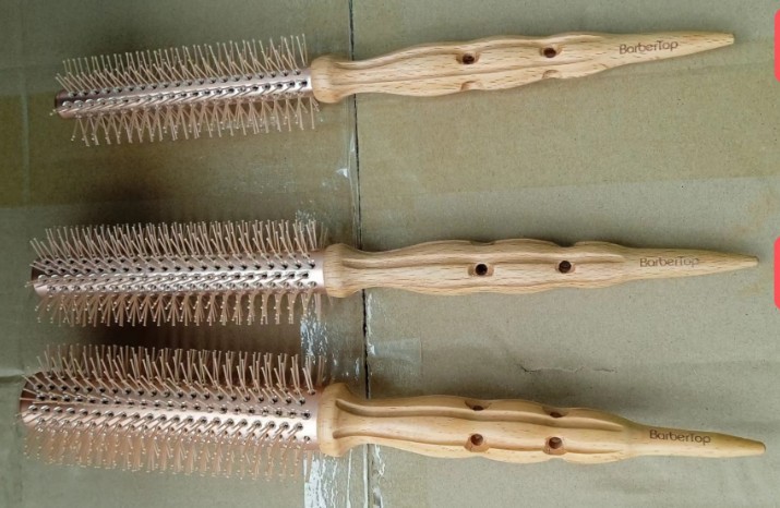 现货发廊美发榉木圆滚卷梳 斜纹猪鬃毛卷发梳 防静电发型师造型梳