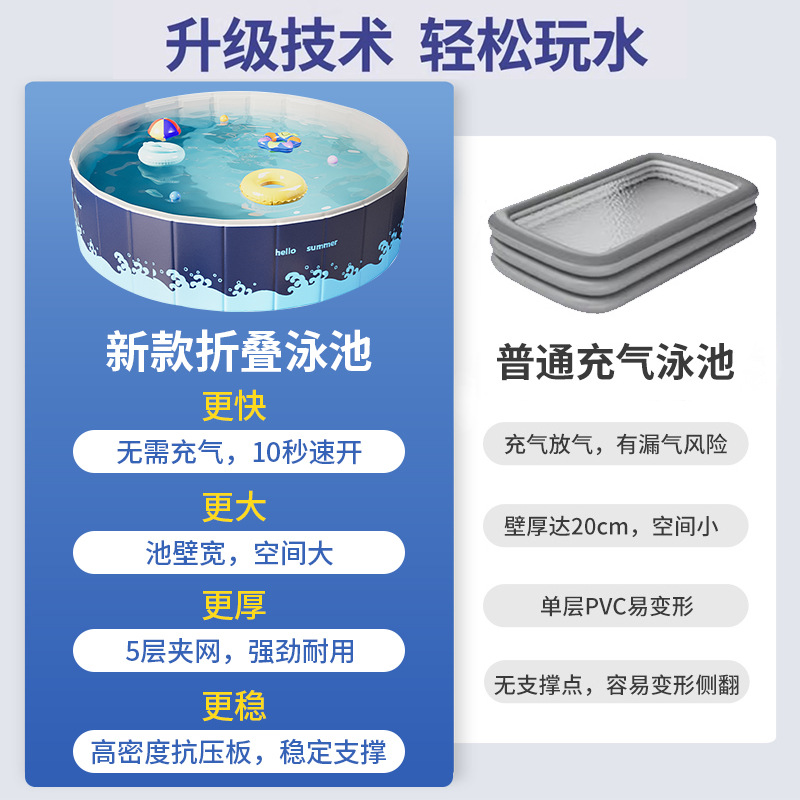 免充气家用便携环保五层加厚折叠戏水池室外大型免安装儿童游泳池