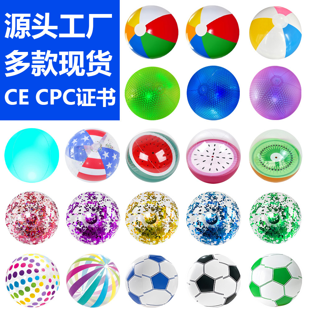 跨境PVC充气沙滩球户外亲子玩具球水上游乐广告玩具球亮片沙滩球