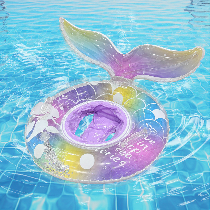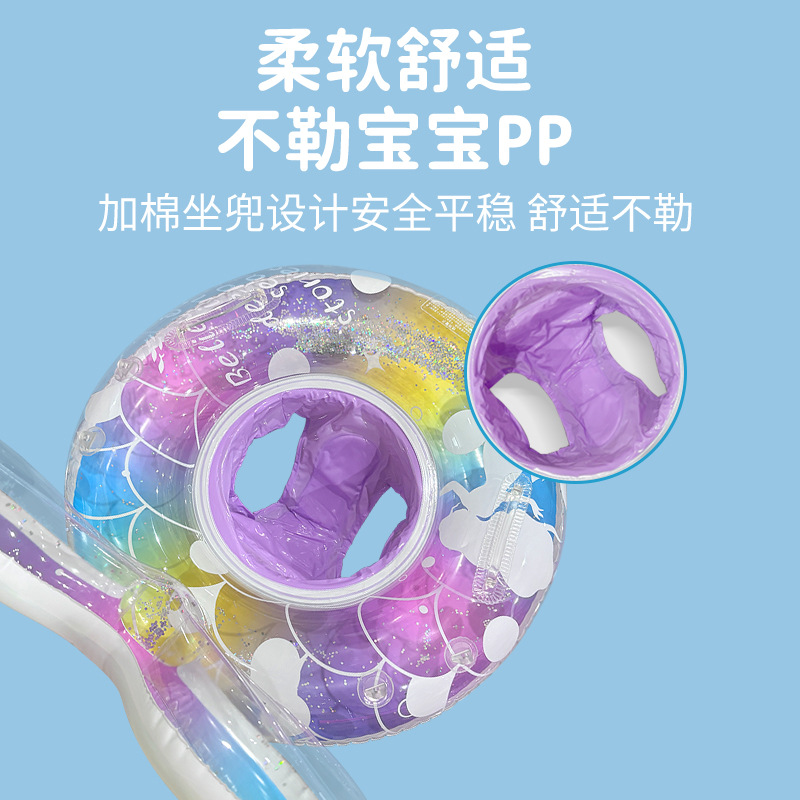 户外泳池玩水便携卡通亮片美人鱼儿童游泳圈海绵底3-6岁充气坐圈