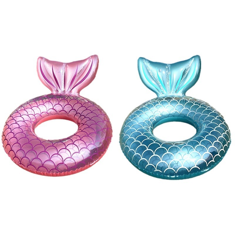 新款美人鱼游泳圈 印花靠背浮圈救生圈水上用品充气泳圈现货批发