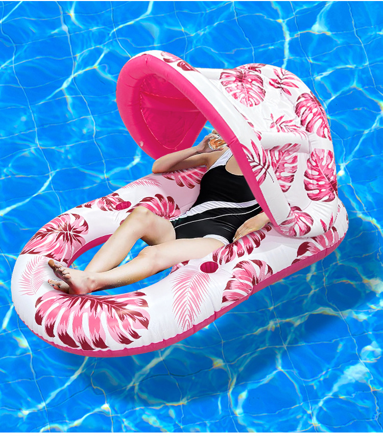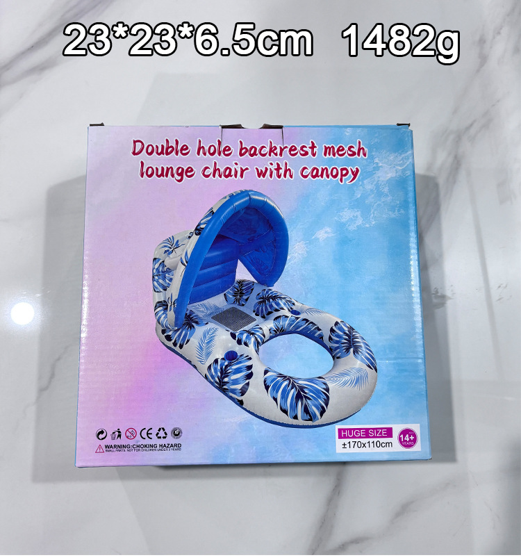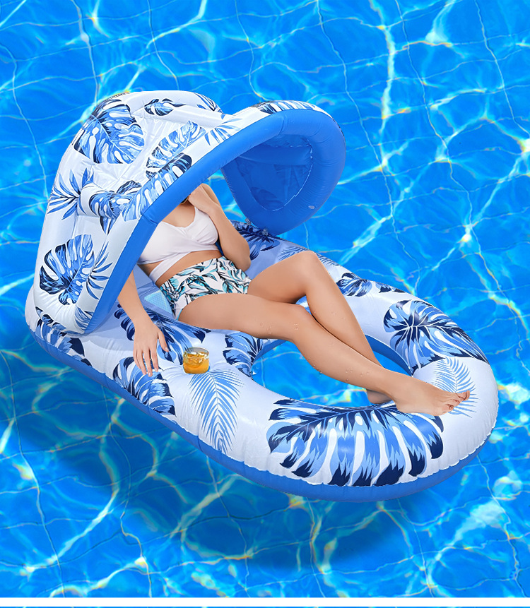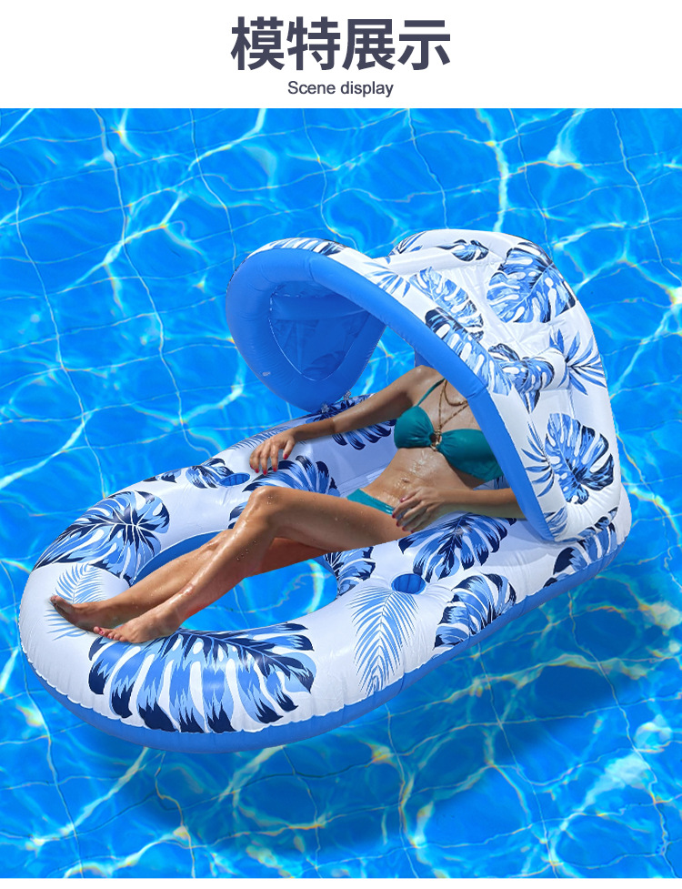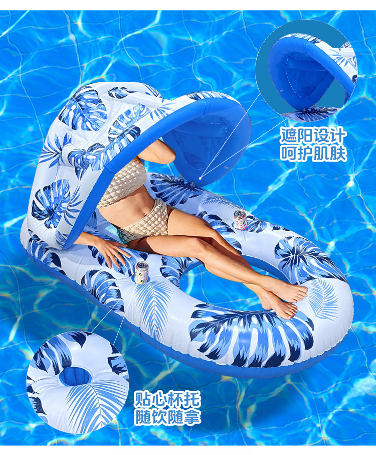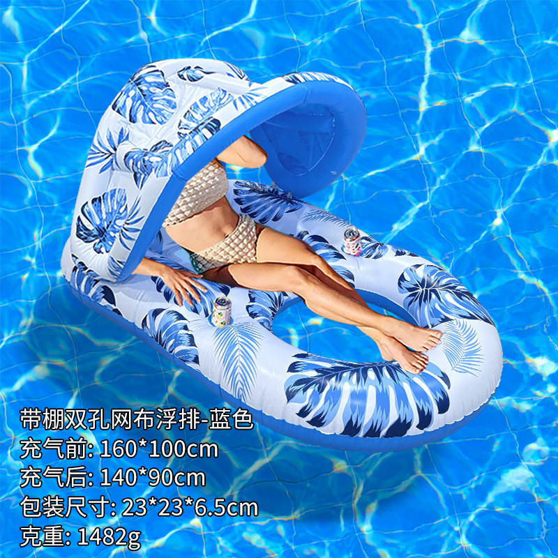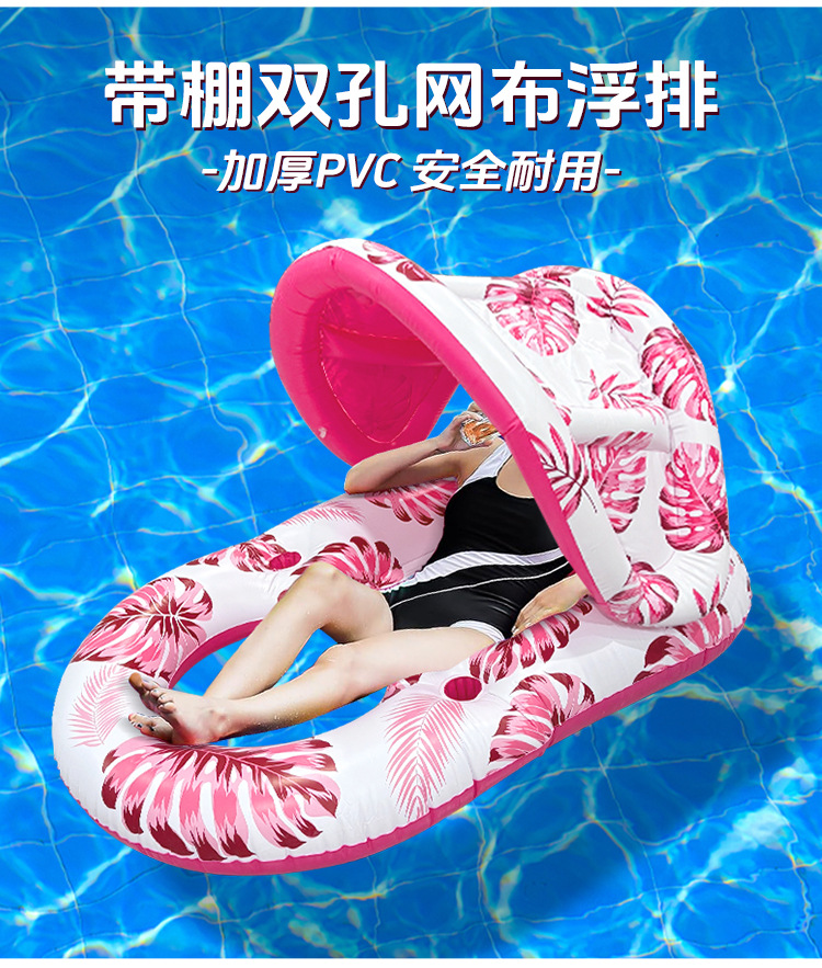 跨境戏水娱乐环保加厚PVC水上躺椅遮阳棚双孔网布单人充气浮排