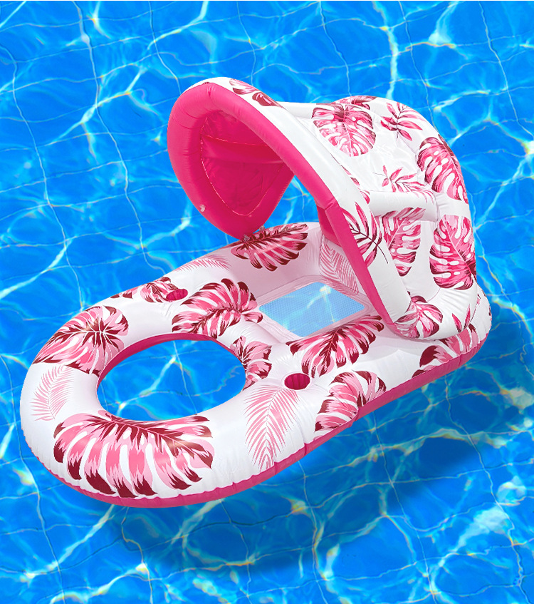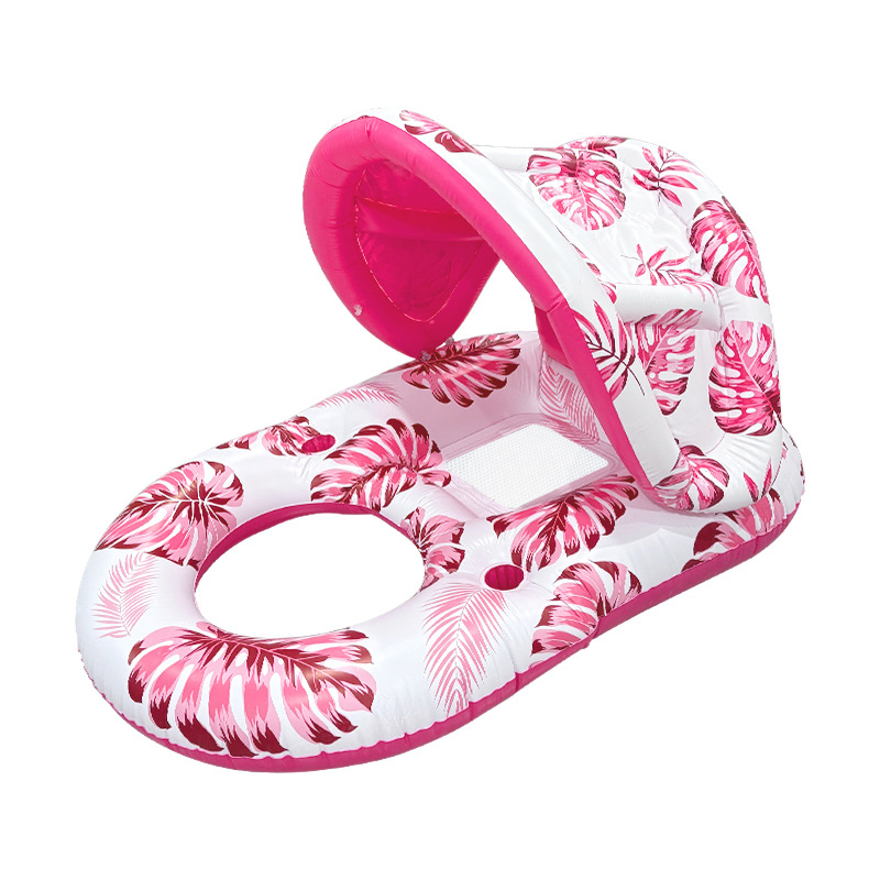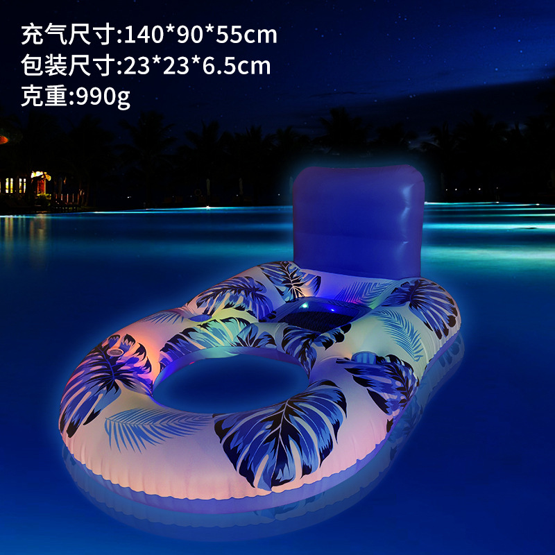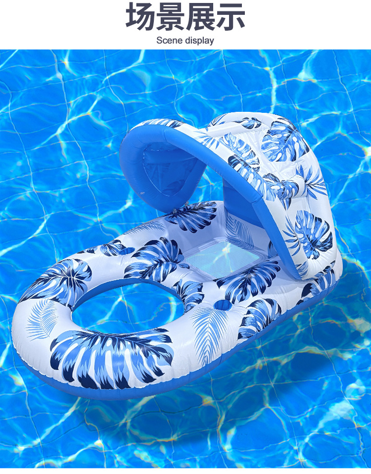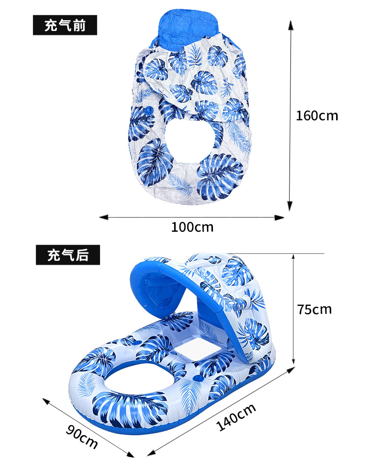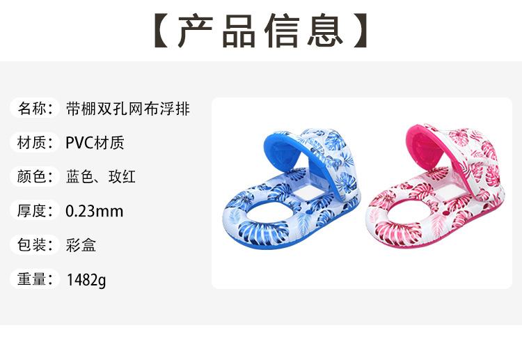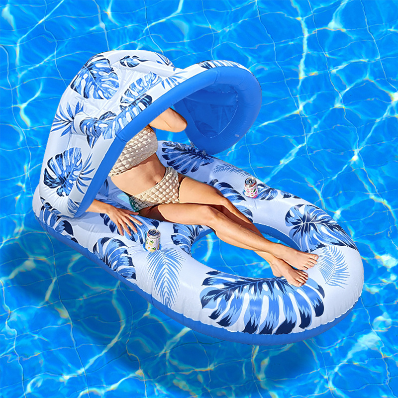 跨境戏水娱乐环保加厚PVC水上躺椅遮阳棚双孔网布单人充气浮排