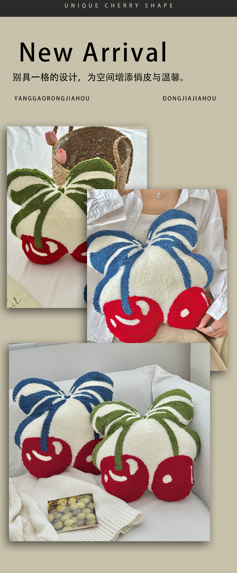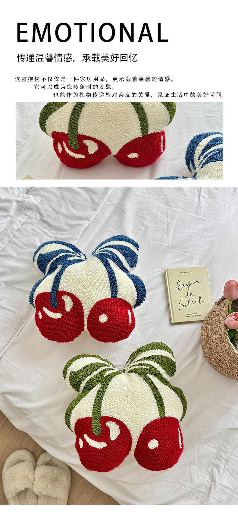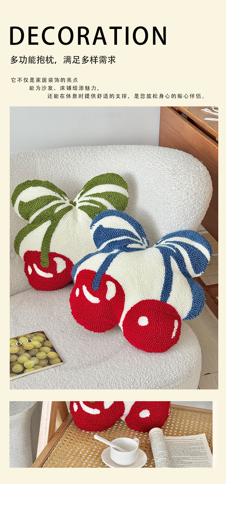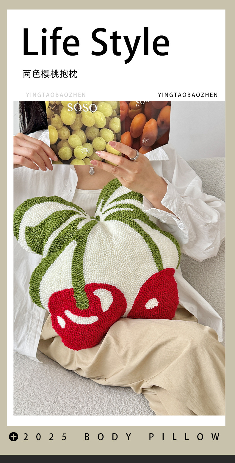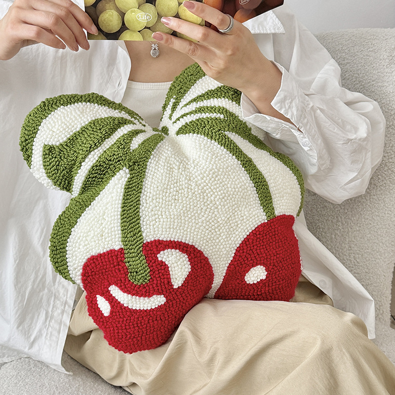 跨境清新樱桃圈绒抱枕舒适柔软卧室办公室坐垫客厅沙发多用靠垫