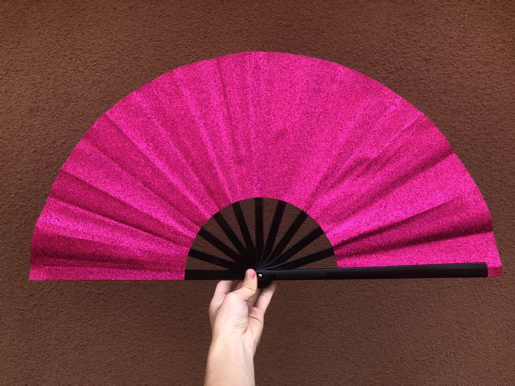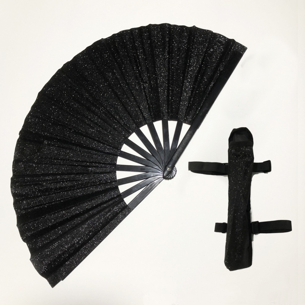 10寸闪粉亚马逊爆款响扇折扇有现货33厘米功夫扇葱粉扇子带扇套