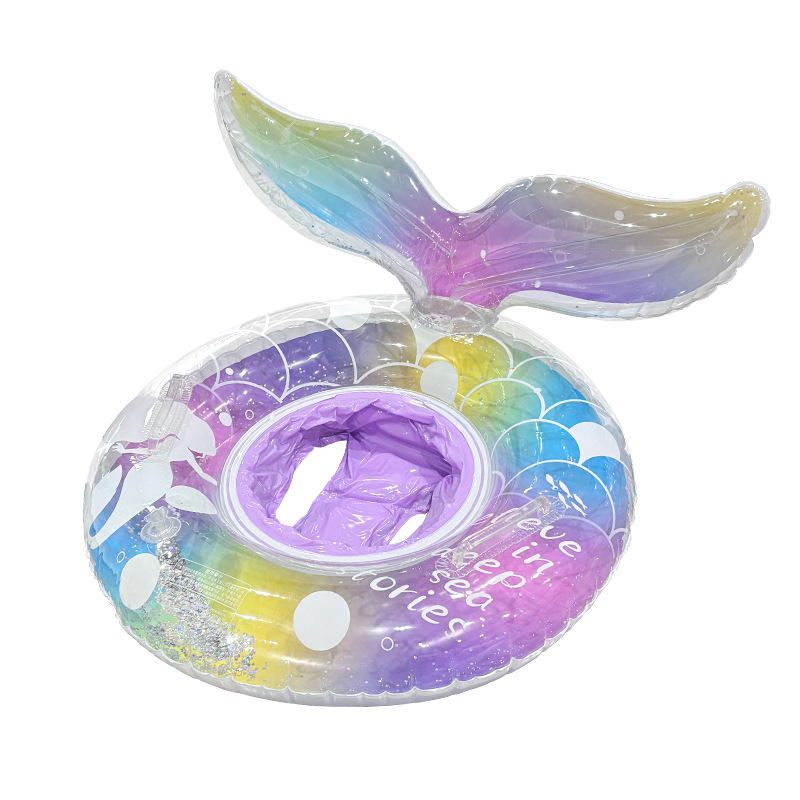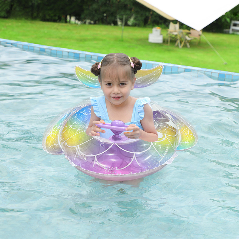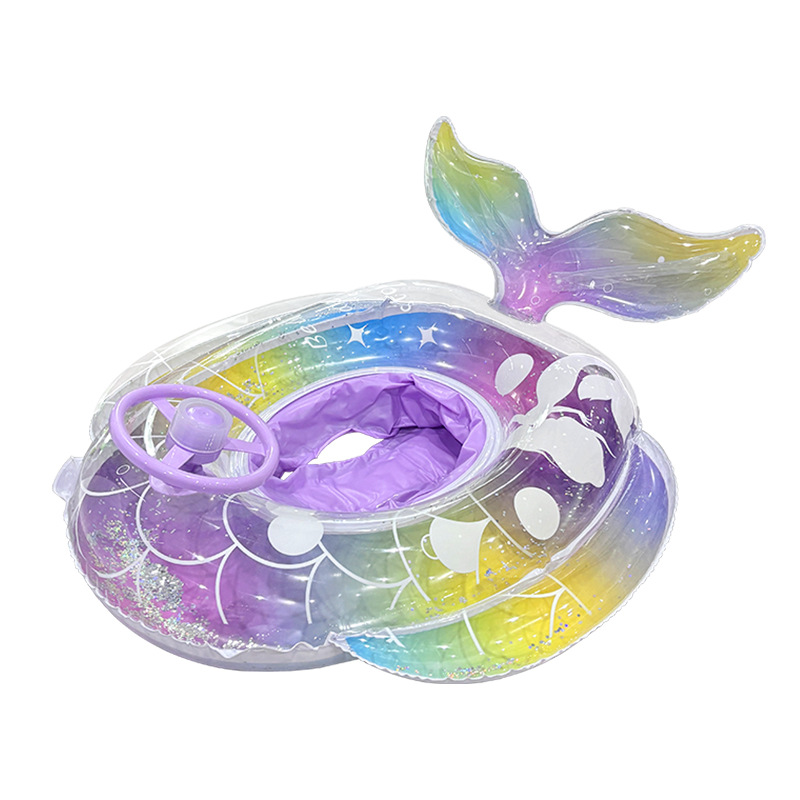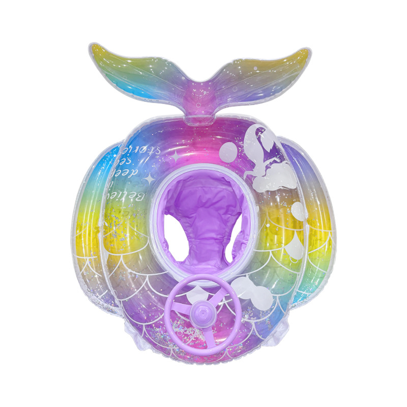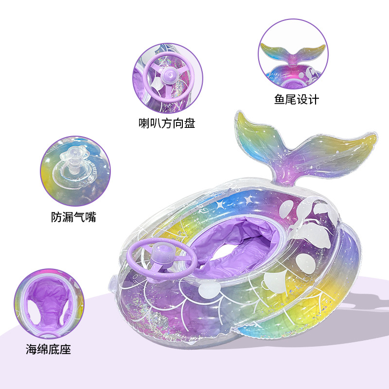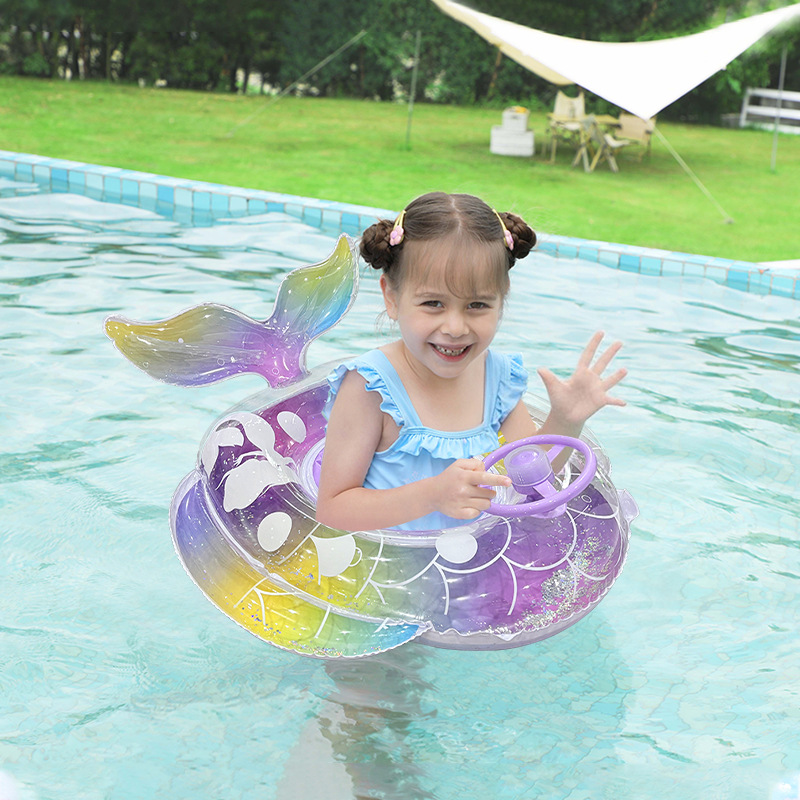 ins户外新款卡通亮片美人鱼方向盘充气座艇3-6岁加厚儿童游泳圈