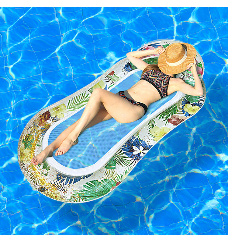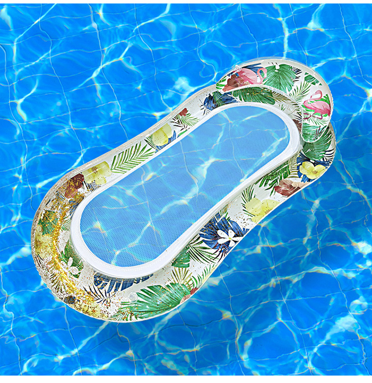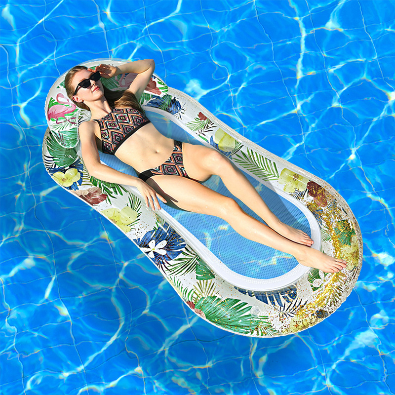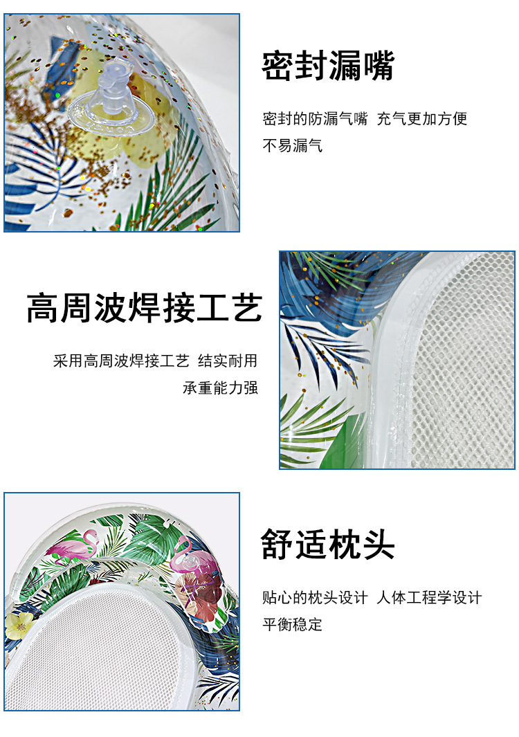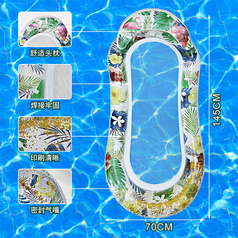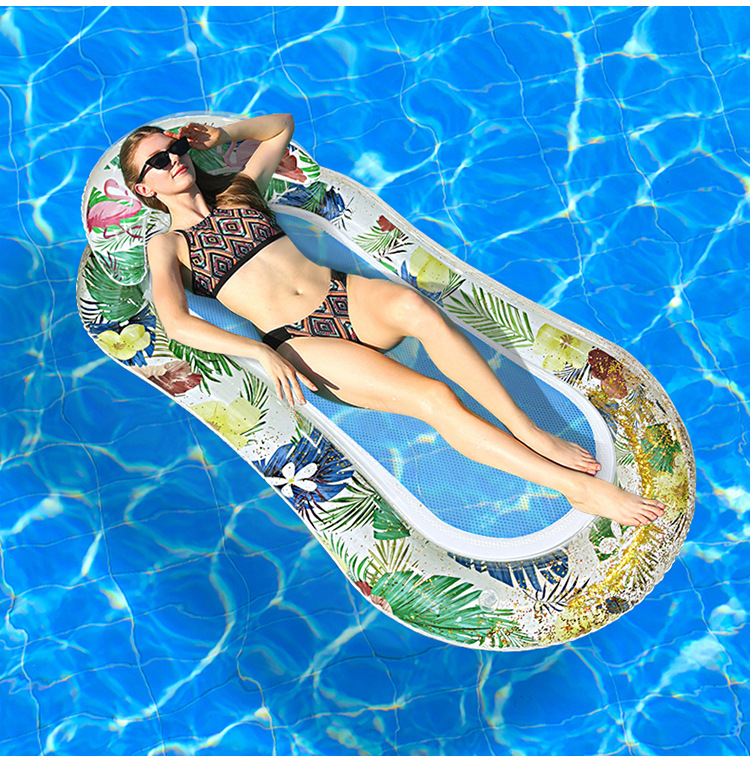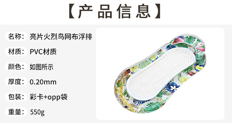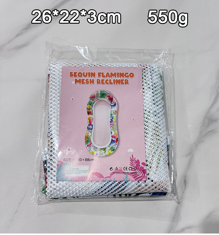 跨境夏季新品亮片火烈鸟网布充气浮床环保加厚带靠枕单人水上浮排